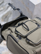 CITY MULTI-POCKET BACKPACK 42 IN KHAKI GREEN NYLON AND BLACK SMOOTH CALFSKIN