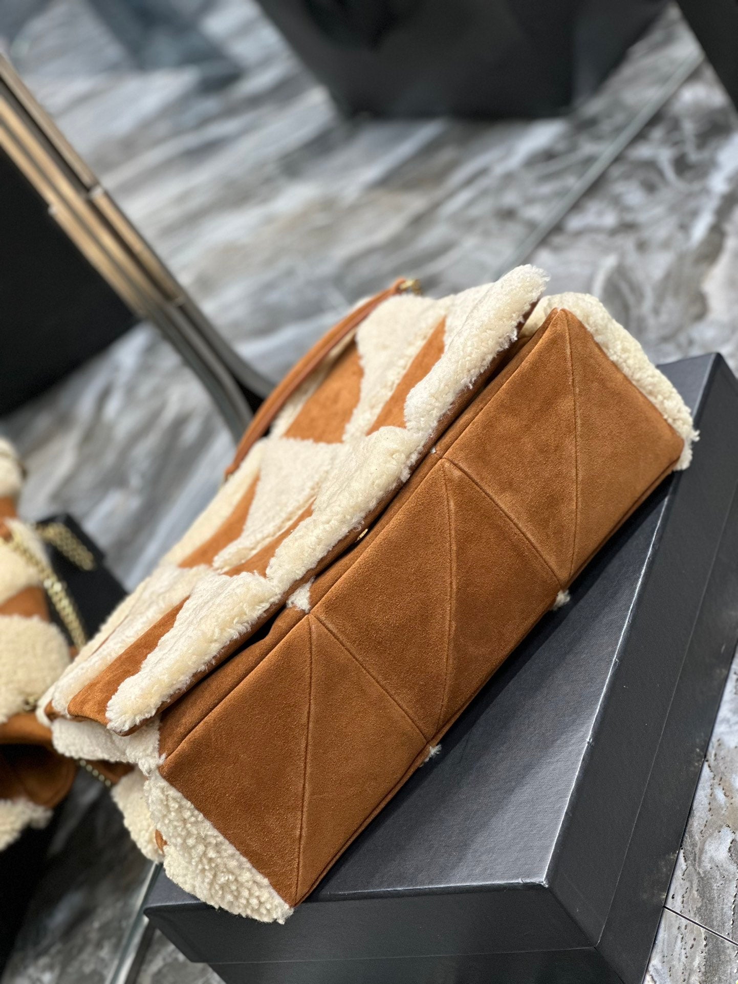 JAMIE 4.3 LARGE BAG 38 IN BROWN SUEDE MIX BEIGE SHEARLING GOLD HARDWARE