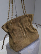 JAMIE LARGE POCHON 34 IN DULL BROWN SUEDE COPPER HARDWARE