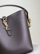 LE 37 SMALL BUCKET BAG 20 IN BRUNETTE BROWN CALFSKIN GOLD HARDWARE
