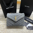 LOULOU SMALL 23 IN GRAY SUEDE GOLD HARDWARE