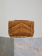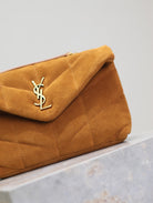 PUFFER TOY 23 IN BRONZE BROWN SUEDE GOLD HARDWARE