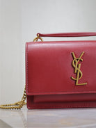 SUNSET SMALL BAG 19 IN RED CALFSKIN COPPER HARDWARE