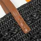 YSL PANIER BAG 55CM BLACK CROCHET RAFFIA TAN CALFSKIN
