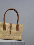 YSL TOTE BAG 29CM PANIER LEATHER TRIMMED RAFFIA