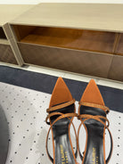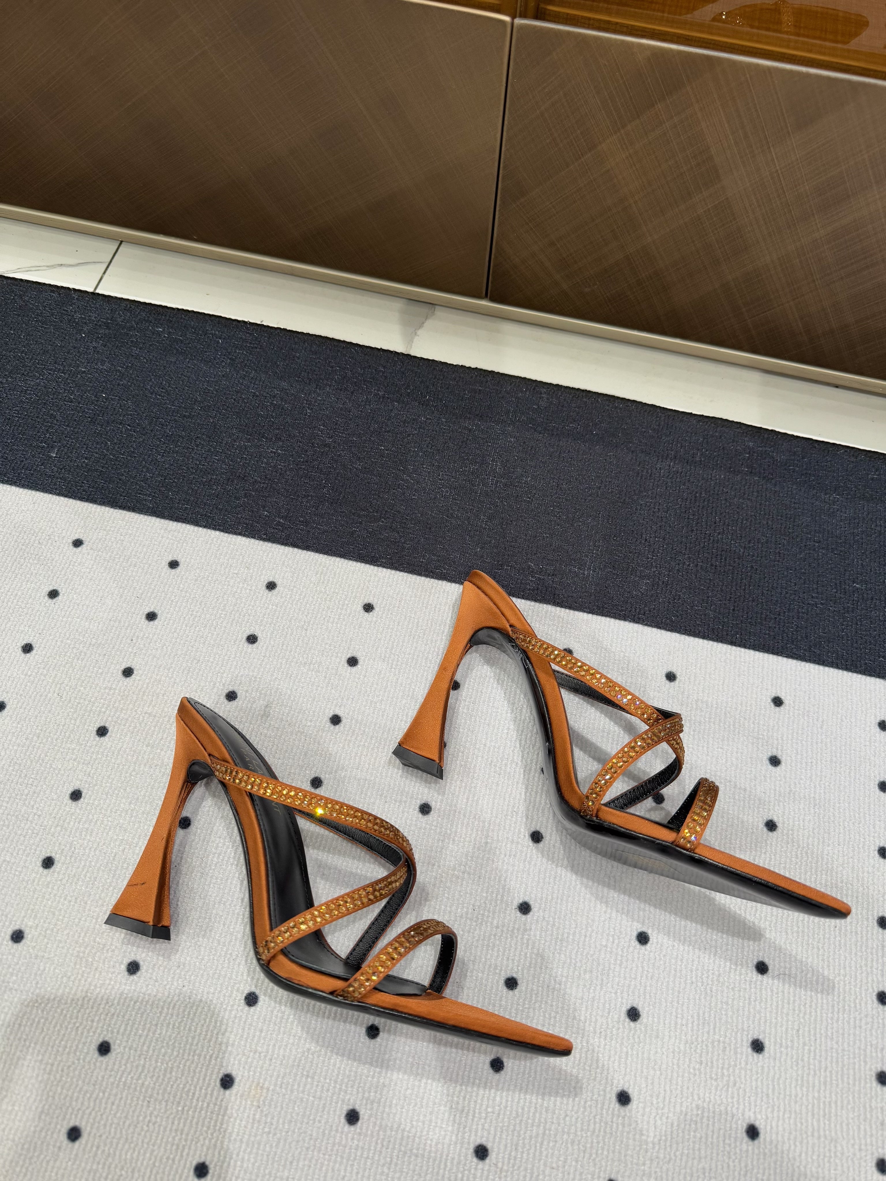 HIGH CRYSTAL STRAP SANDALS IN SANDSTONE SILK
