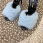 LA 16 HEELED MULES IN SKY BLUE RABBIT FUR AND SMOOTH LAMBSKIN