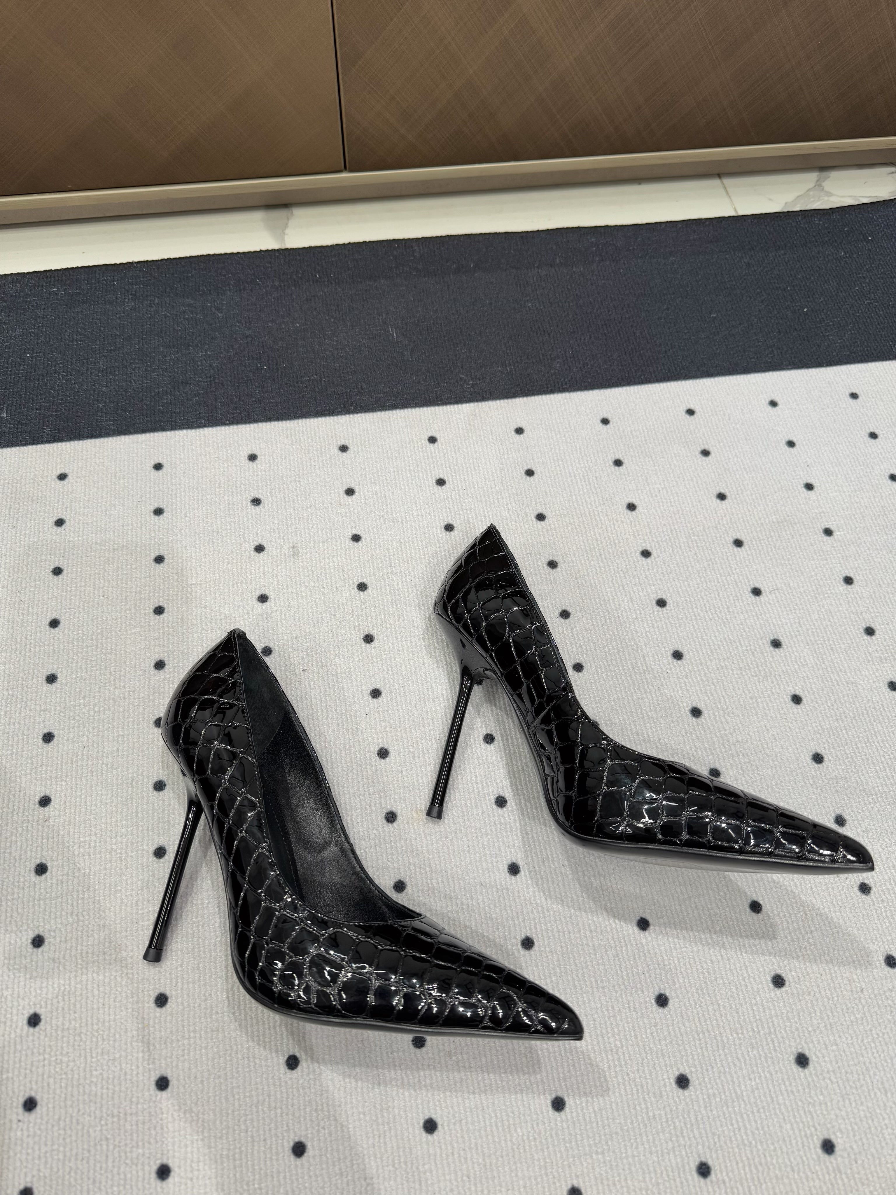 NORMA PUMPS IN BLACK CROCODILE PATTERN SHEEPSKIN