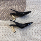OPYUM GOLD HEEL SLINGBACK PUMPS IN BLACK GLOSSY CALFSKIN
