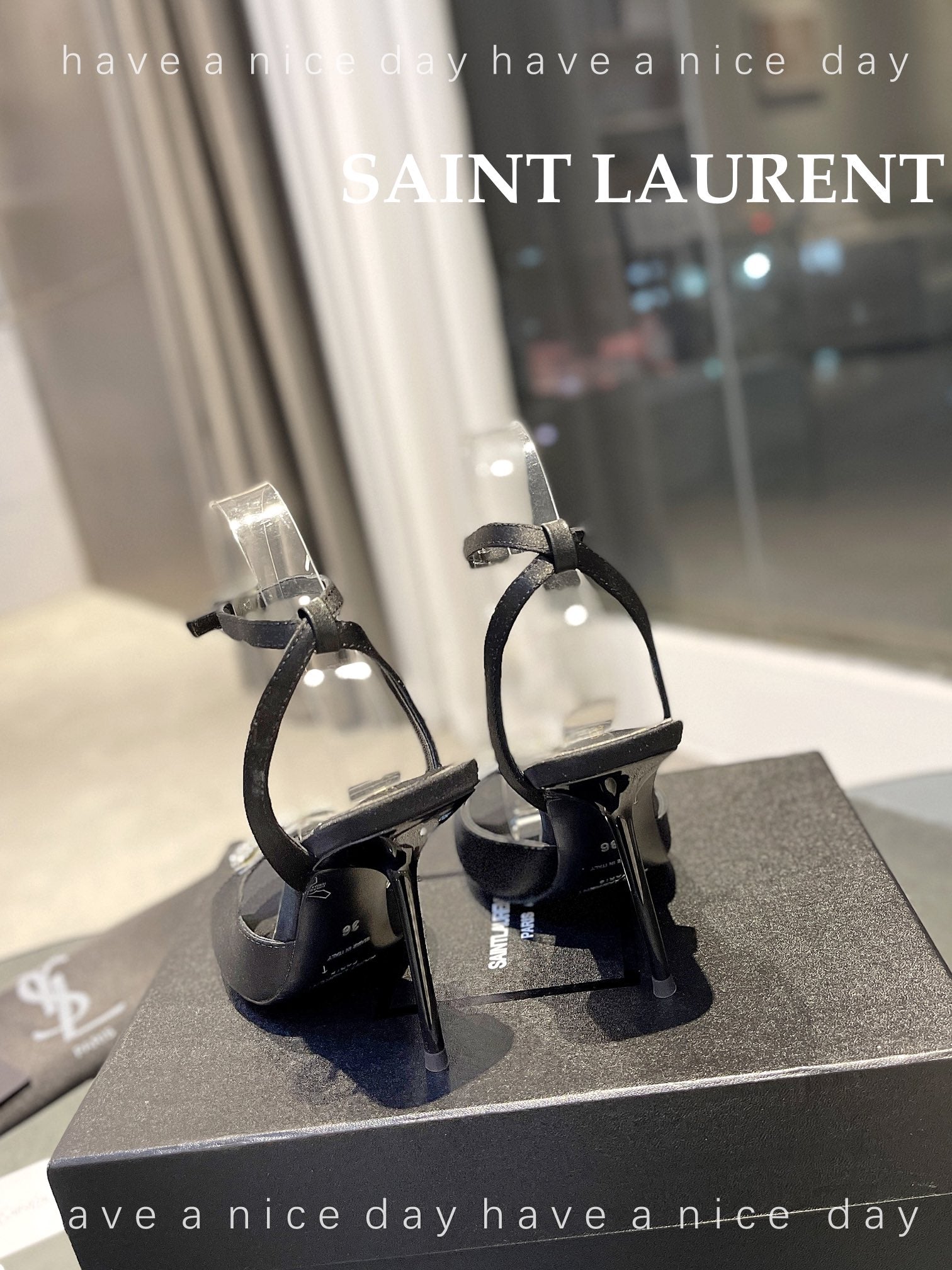 SL AYERS CRYSTAL SANDAL BLACK SATIN