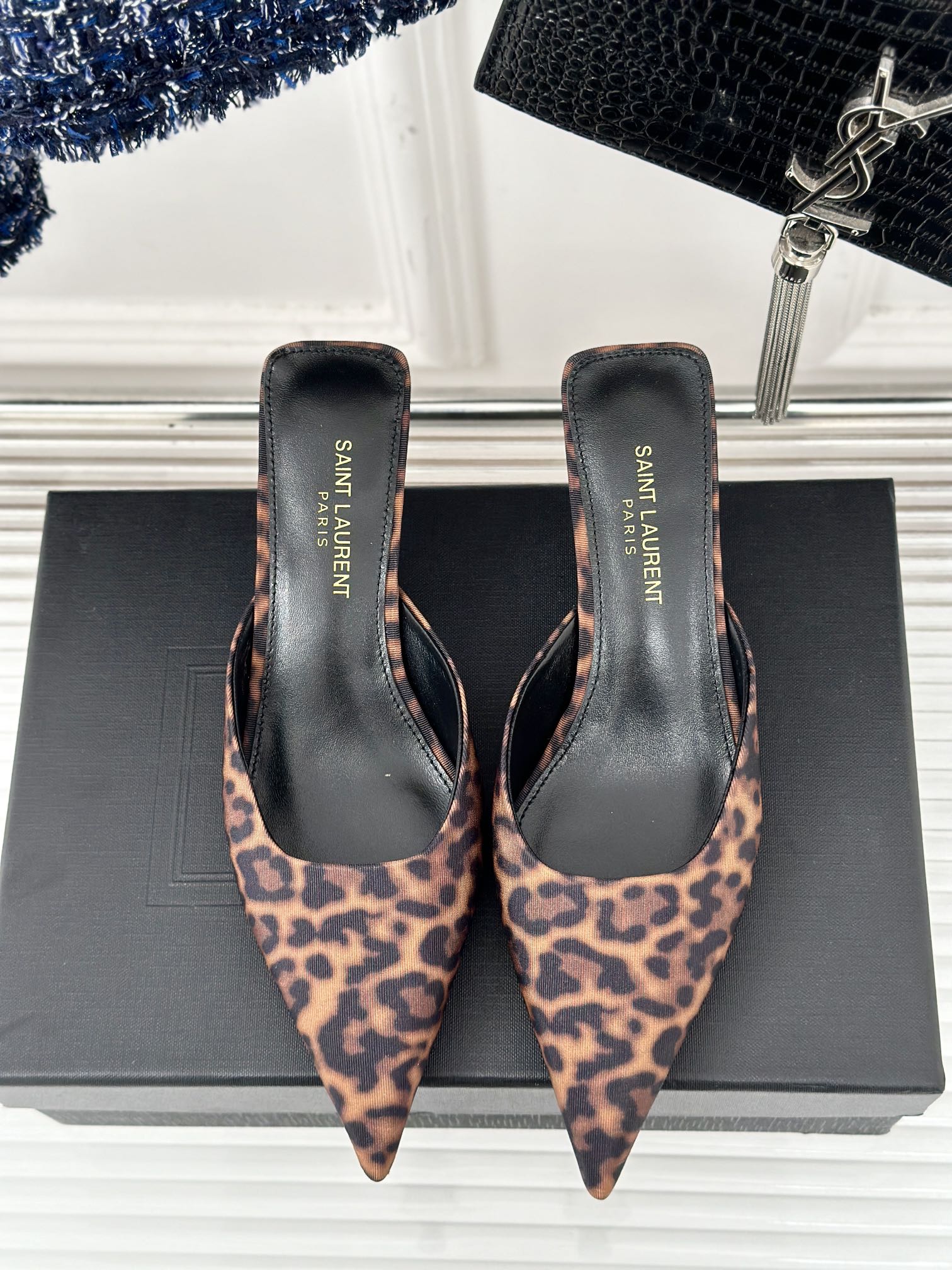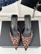 SL BARBARA MULES 55 LEOPARD MOTIF SATIN
