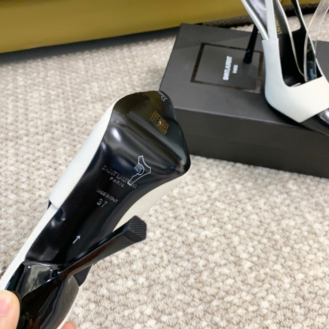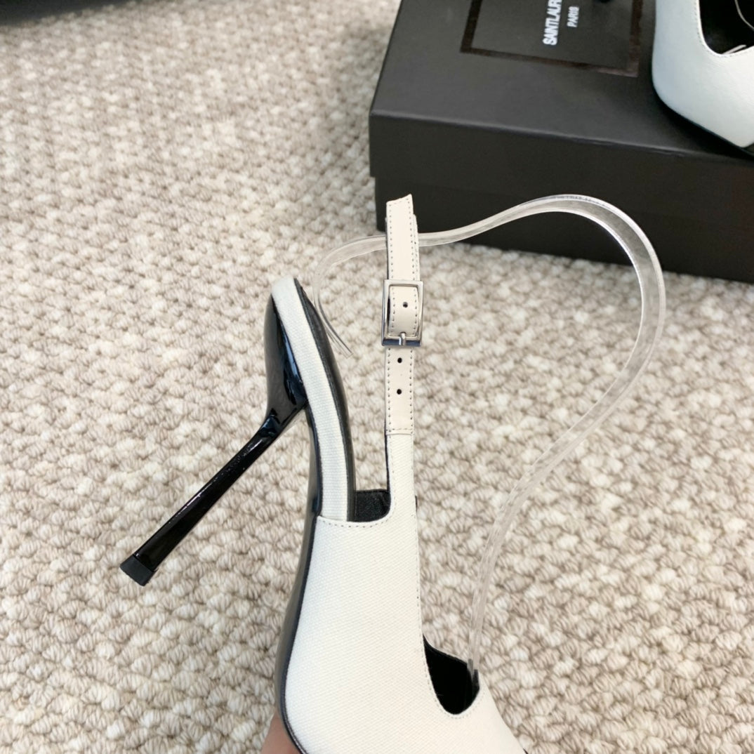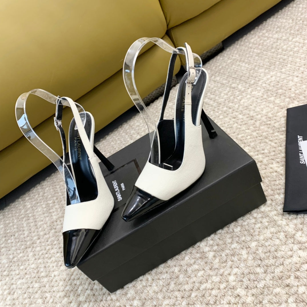 SL CAP-TOE SLINGBACKS WHITE CANVAS AND BLACK CALFSKIN