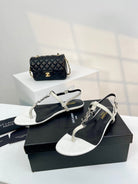 SL Cassandra Croc-Embossed Thong Sandals Black White Leather