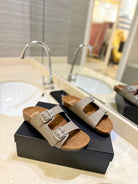 SL Flat Sandal Women Brown Seude Grey Calfskin
