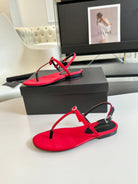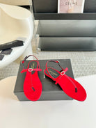 SL Silk Bow T-Strap Flat Sandals Red Leather