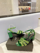 SL TRIBUTE CRYSTAL SANDALS DARK GREEN CALFSKIN