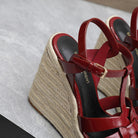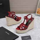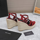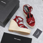 SL TRIBUTE WEDGE SANDALS BERRY POLISHED CALFSKIN