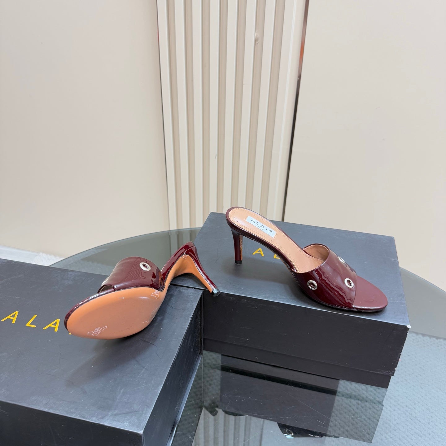 Alaia 2025 Oeillets Embellished Leather Sandals Ruby Red Lambskin 299666