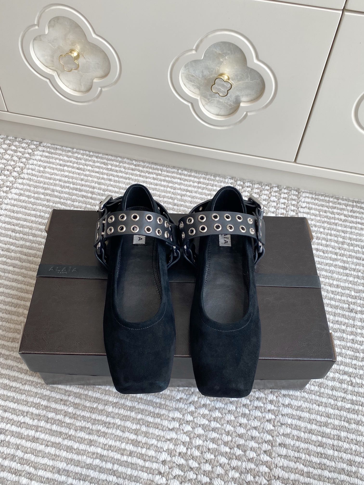 Alaia 25 Biker Ballet Flats Black Suede 291058