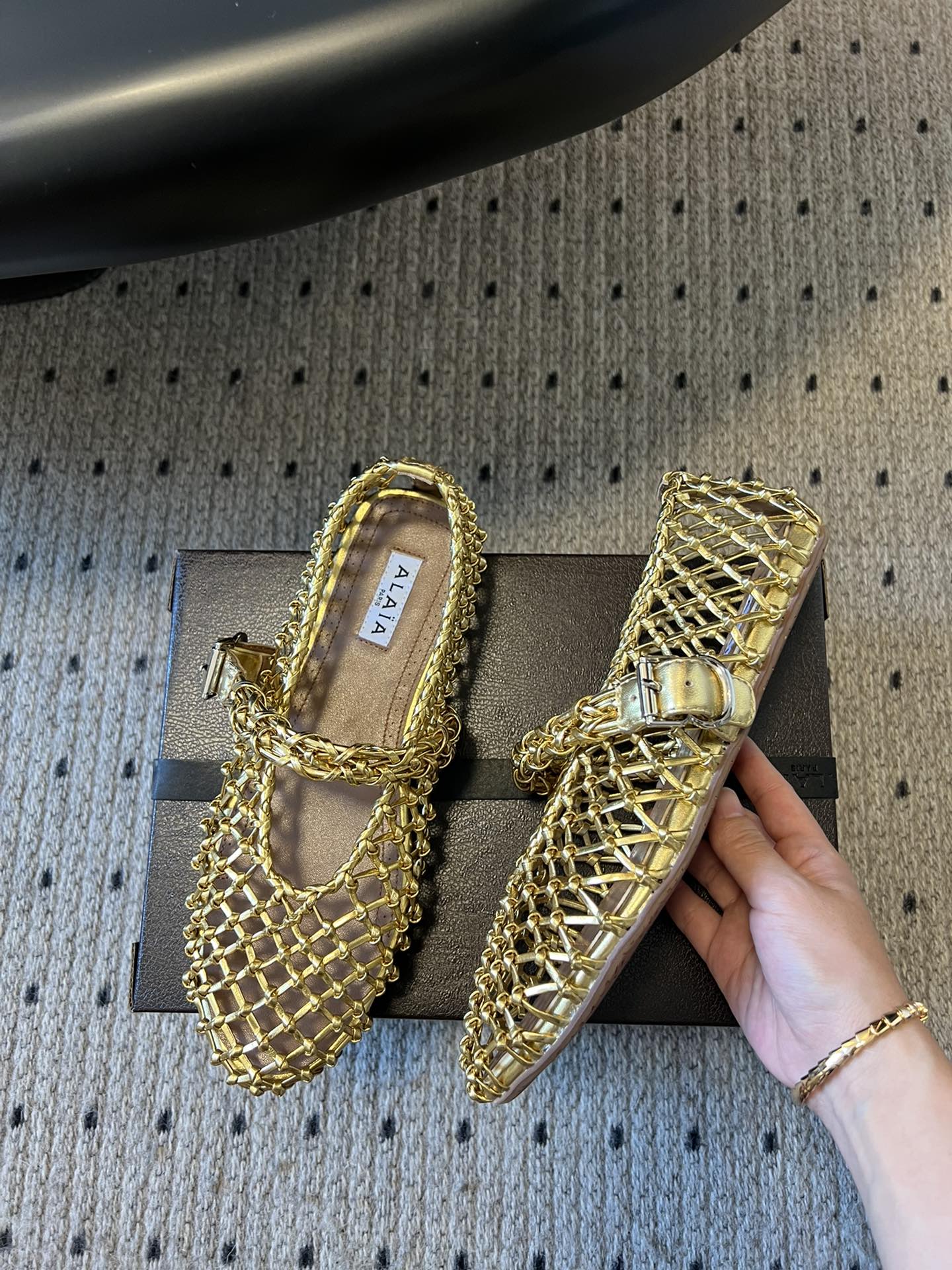 Alaia 25 Woven Ballet Flats Gold Metallic Leather 303675