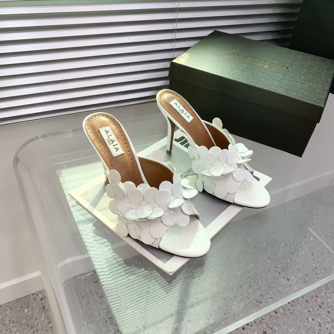 Alaia Confetti Leather Mules White Sheepskin Cowhide 293165