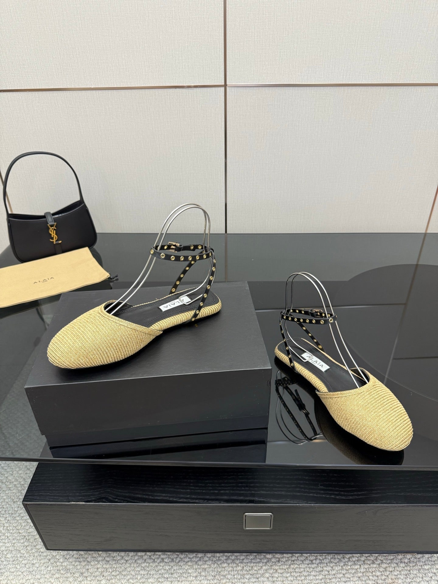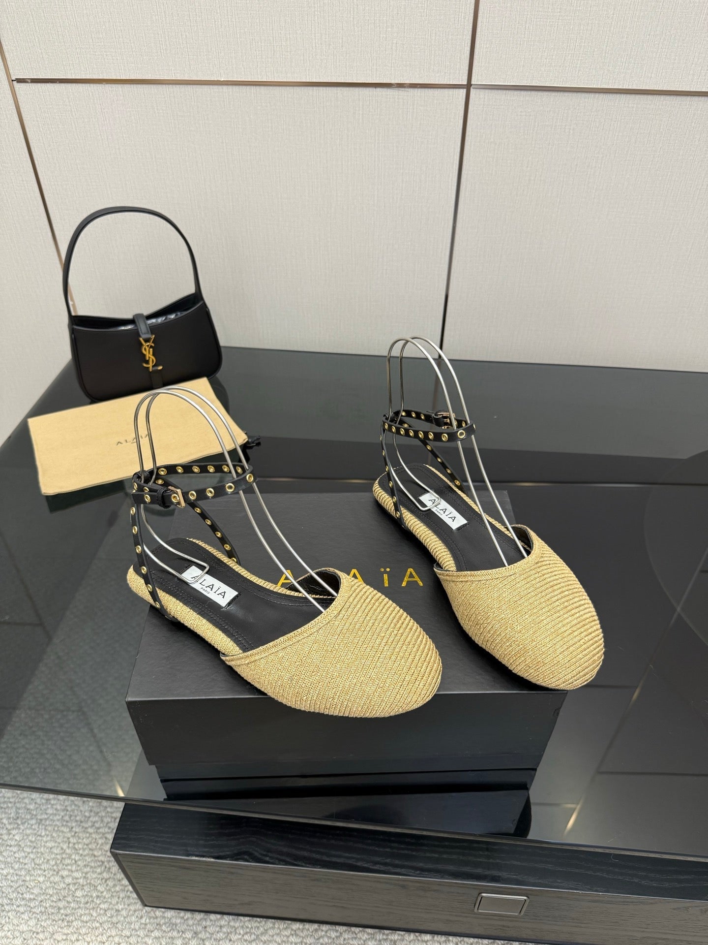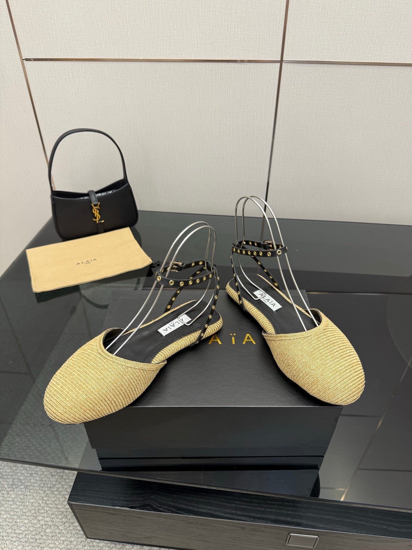 ALAIA flat slippers golden beige sheepskin 389629