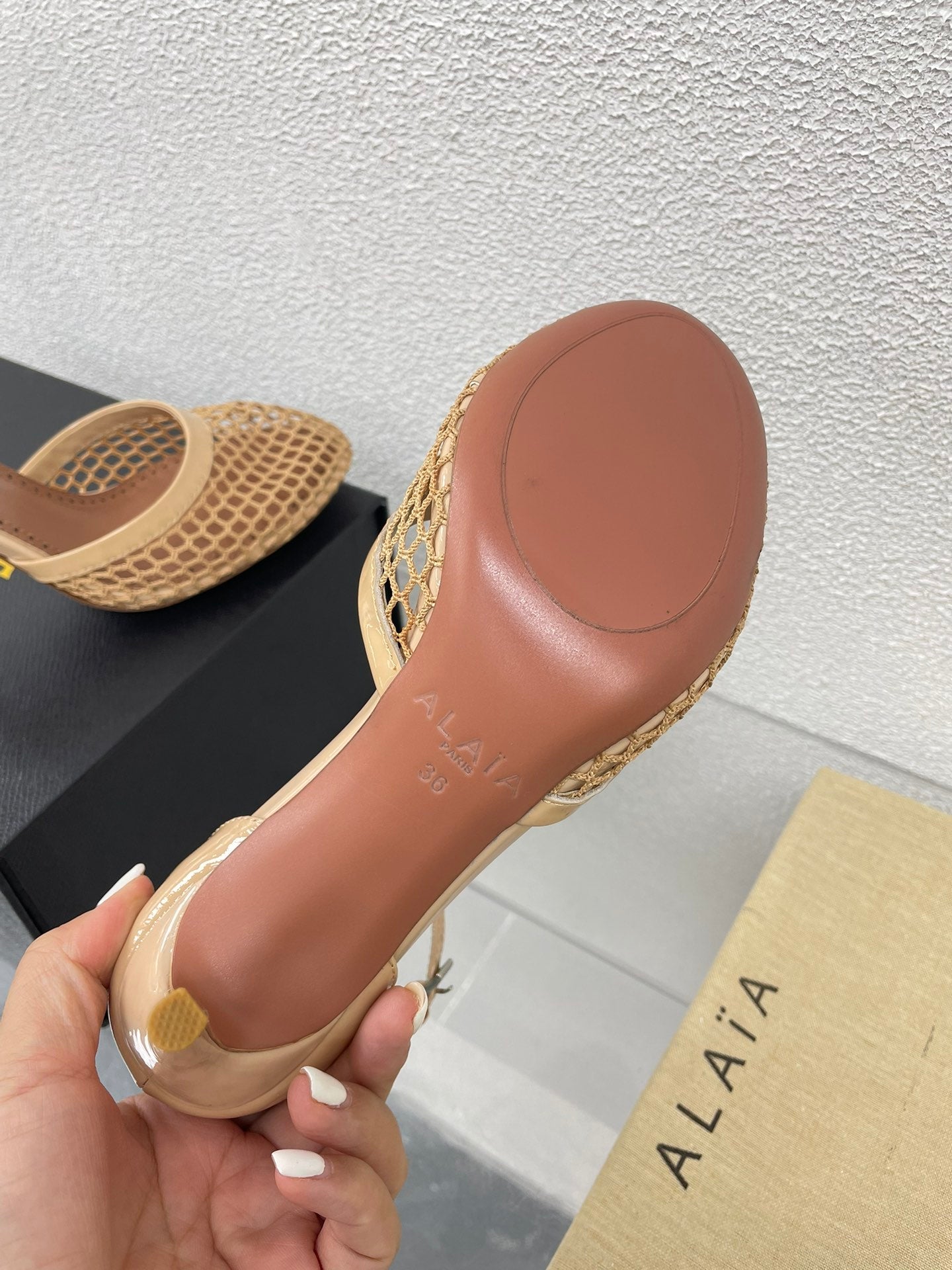 ALAIA HIGH FISHNET 9 CM PUMPS IN EGG NOG MESH