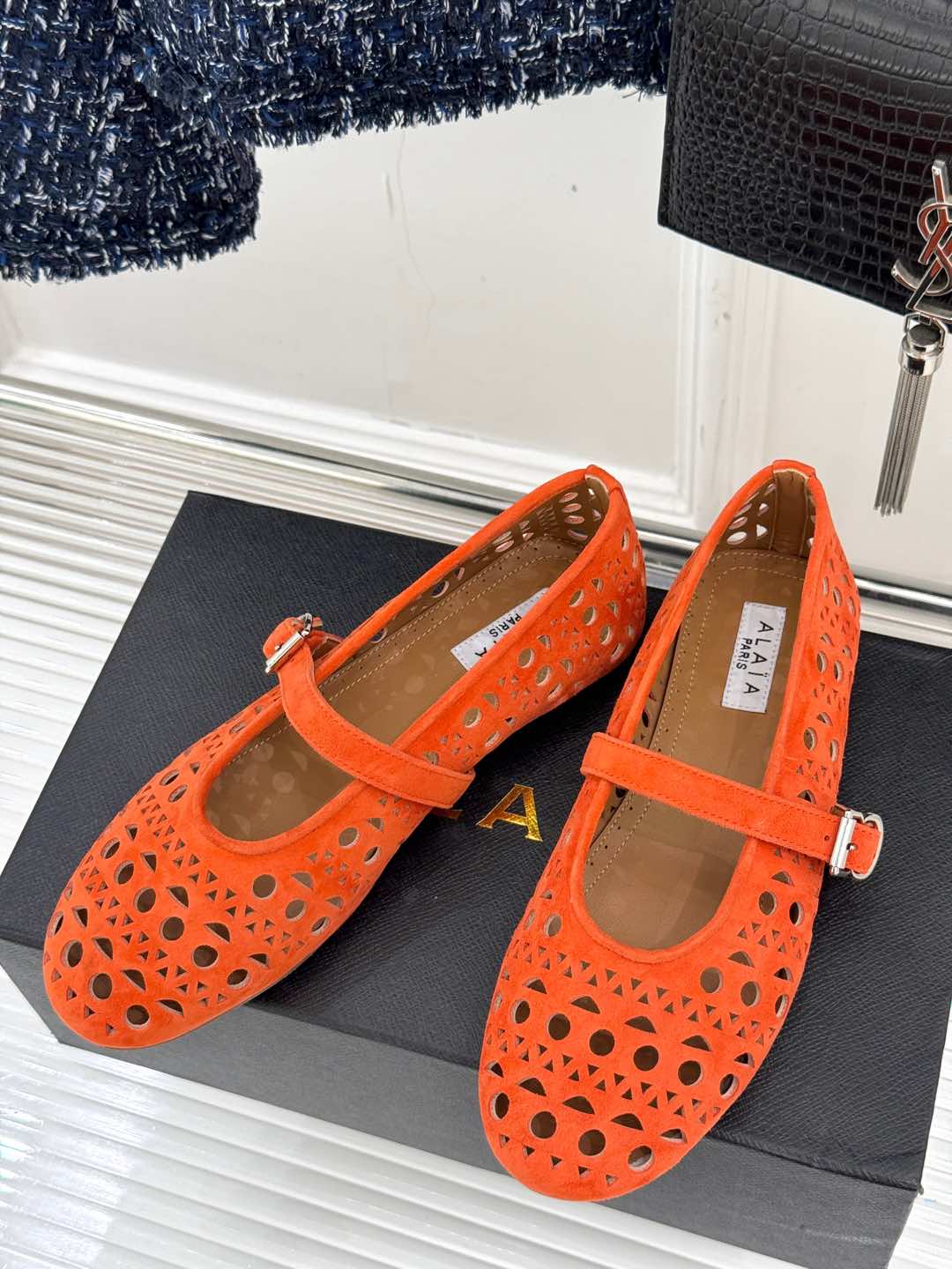 Alaia Women's Ballet Flat Orange Suede 293228