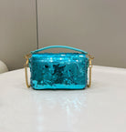 BAGUETTE MINI 19 IN BRIGHT TURQUOISE SEQUINS GOLD HARDWARE