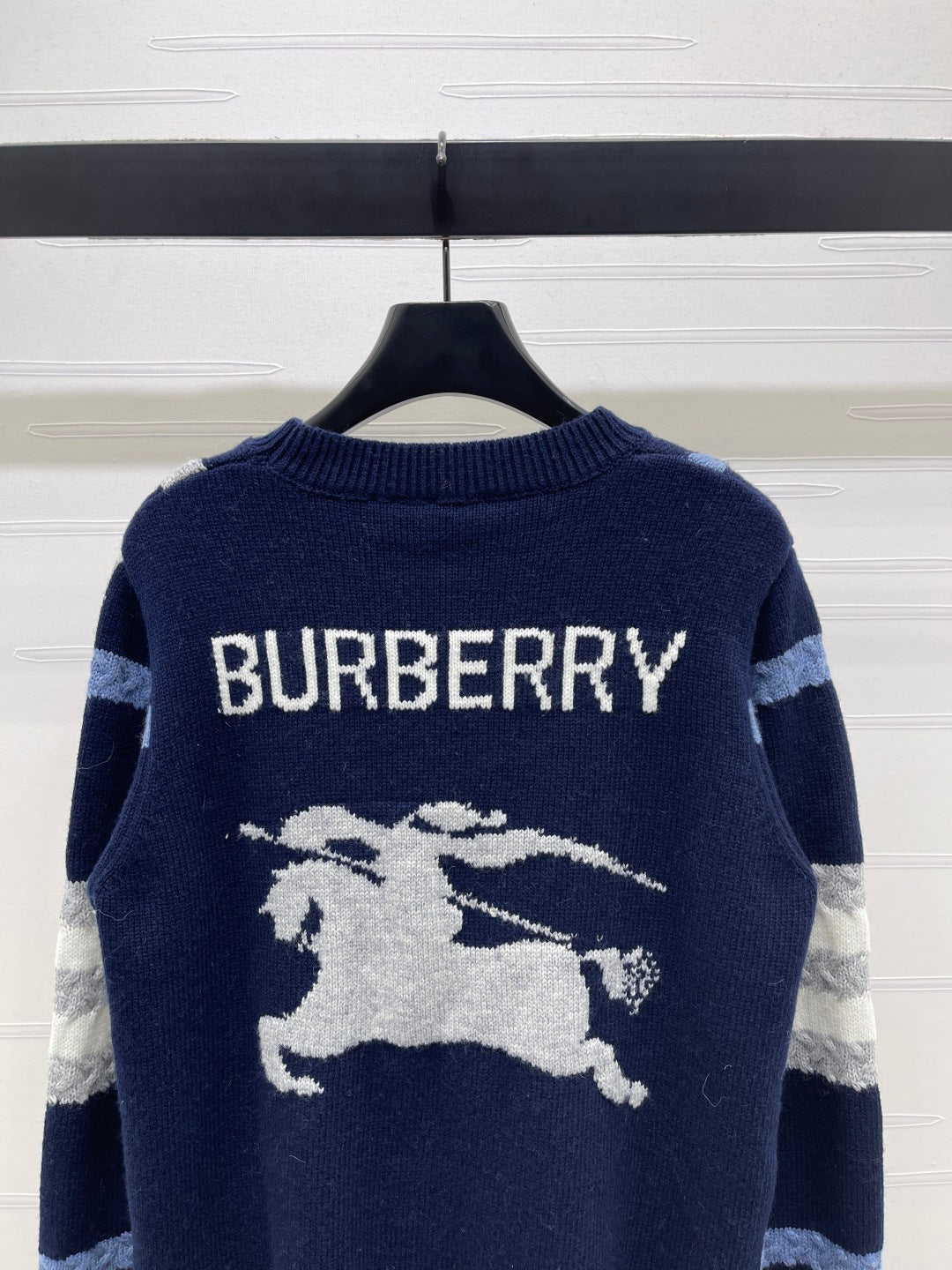 Burberry 25 Crew Neck Long-Sleeve Sweater Navy Blue Wool Cashmere