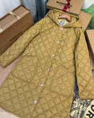 Burberry 25 Quilted Hooded Long Coat Yellow Polyester Cotton