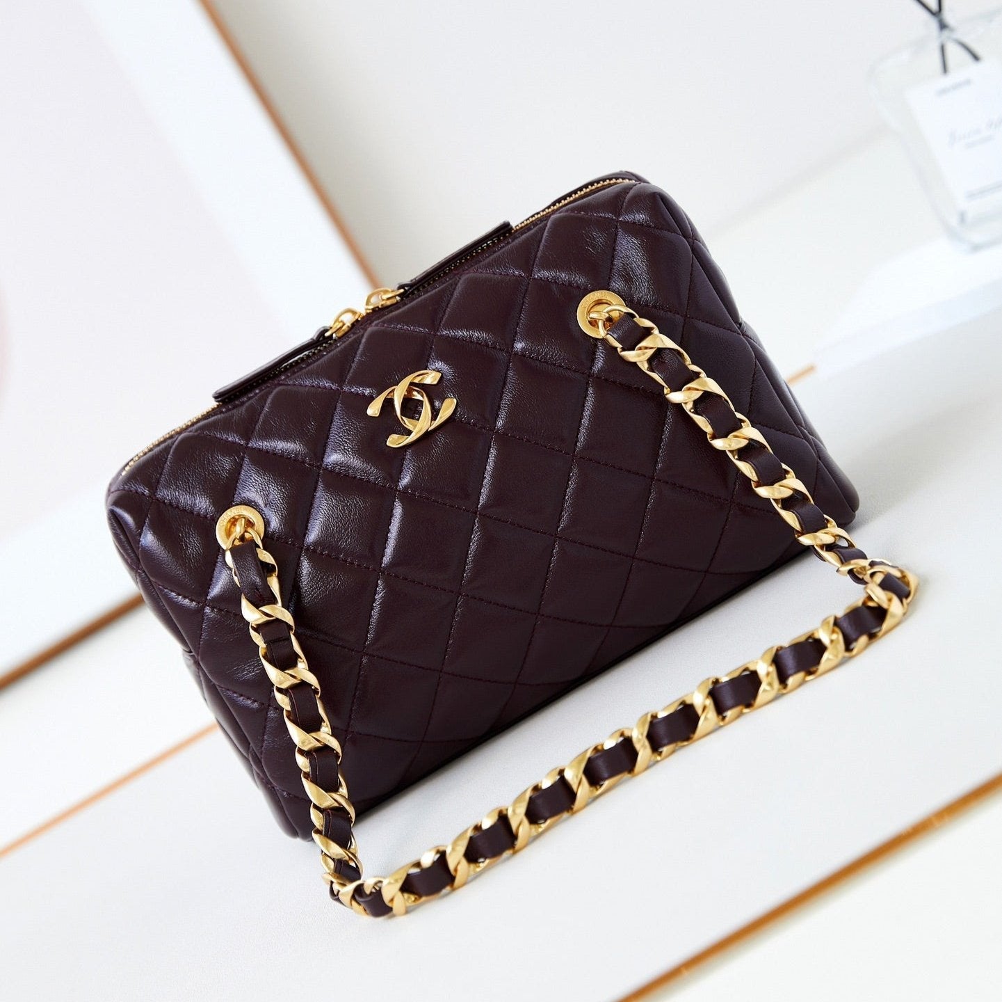 CC 24K Bowling Bag 25cm Burgundy Waxed Lambskin