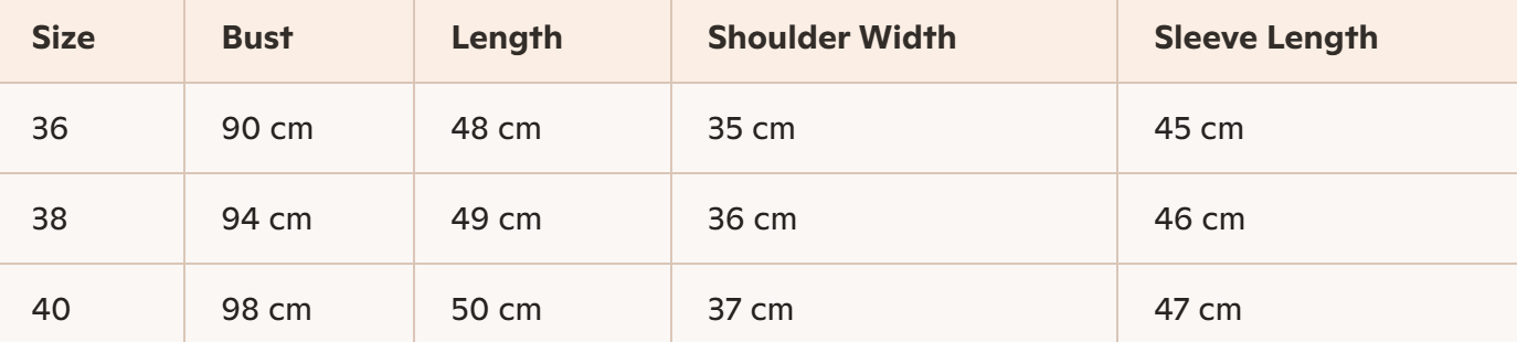 - Size : 36, 38, 40