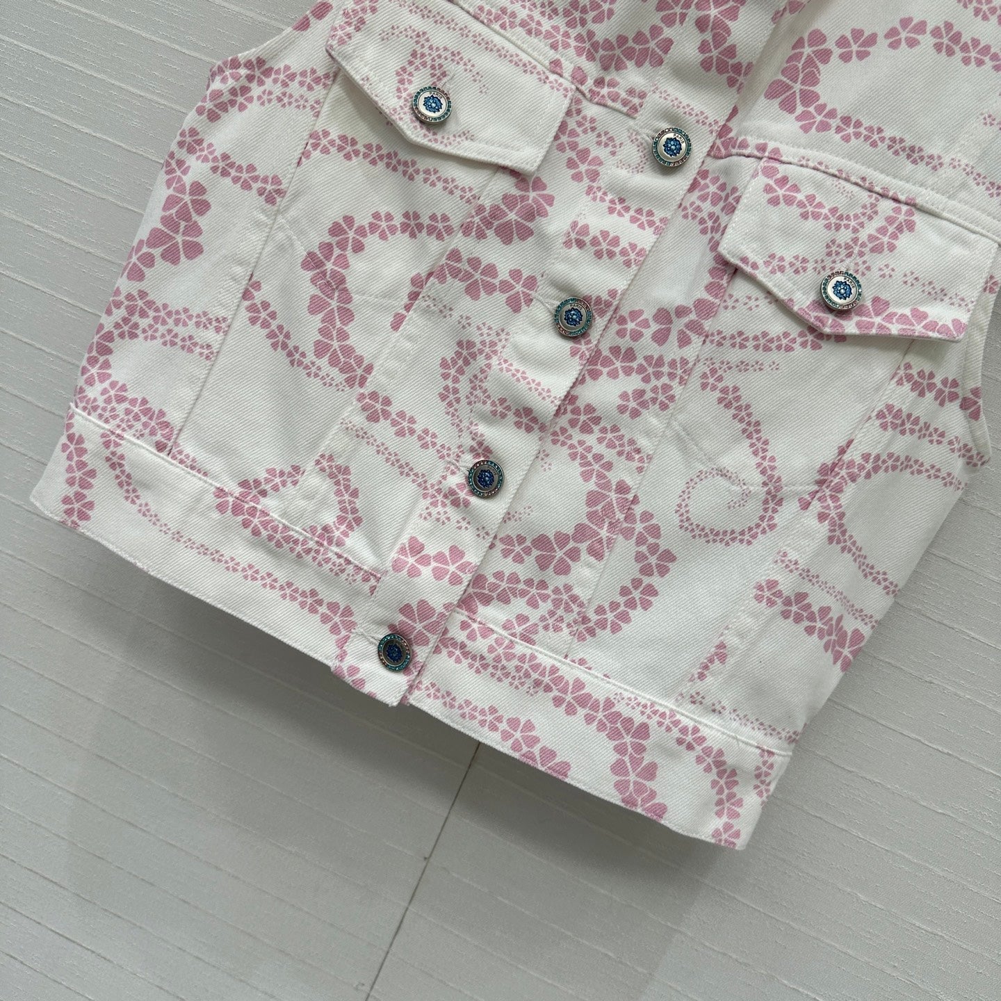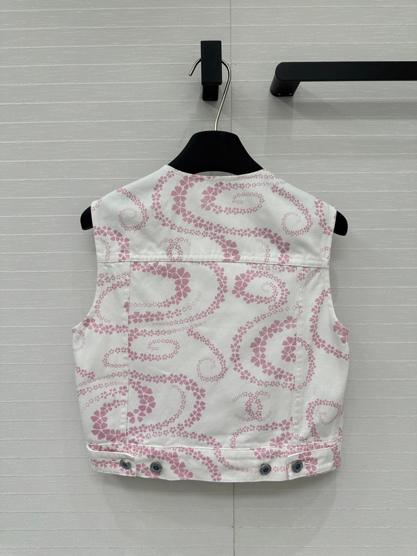 CC 25 Printed Denim Round Neck Vest Pink White Cotton