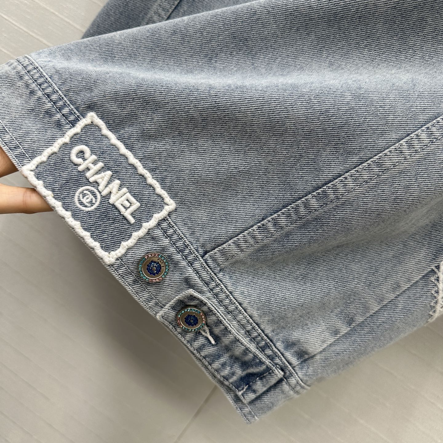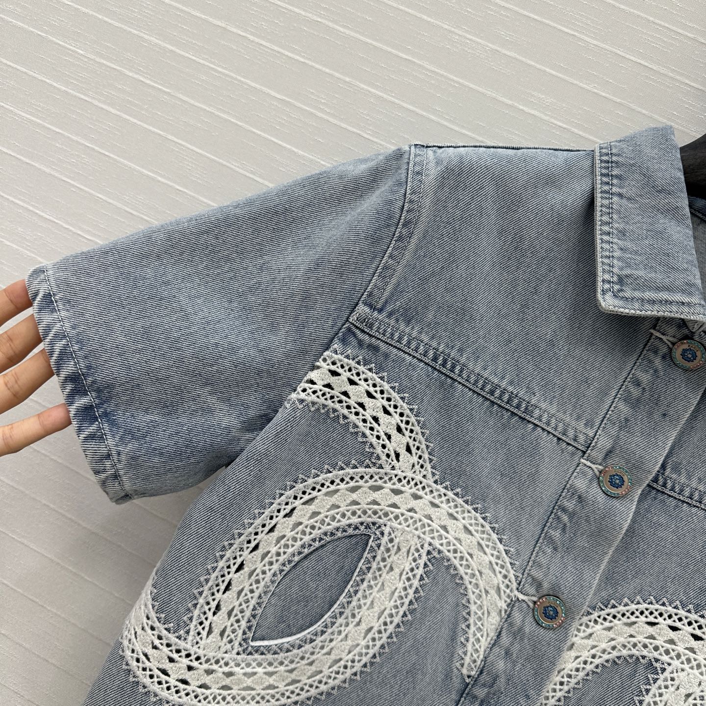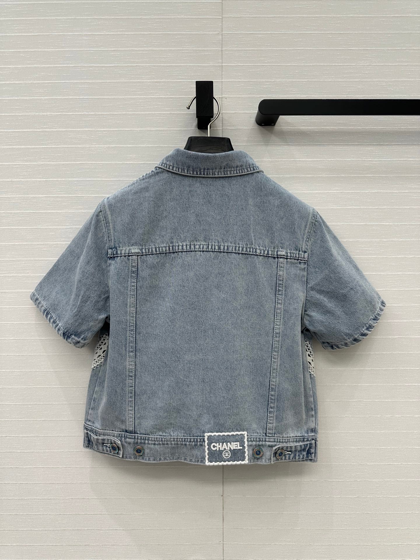 CC 25 Round Neck Short-sleeved Jacket Light Blue Denim Cotton