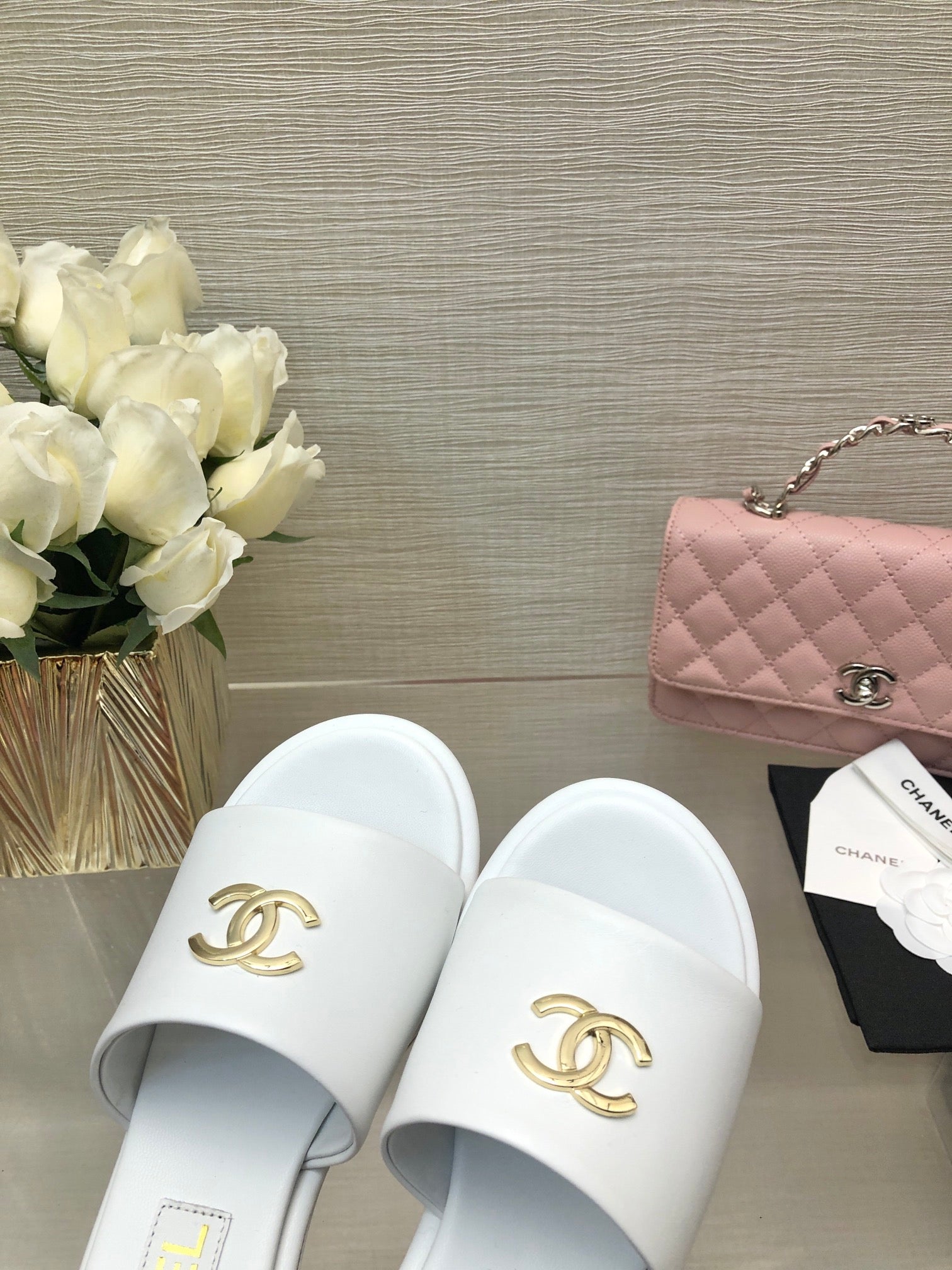 CC 25C Mid Heel Mule White Genuine Calfskin 212954