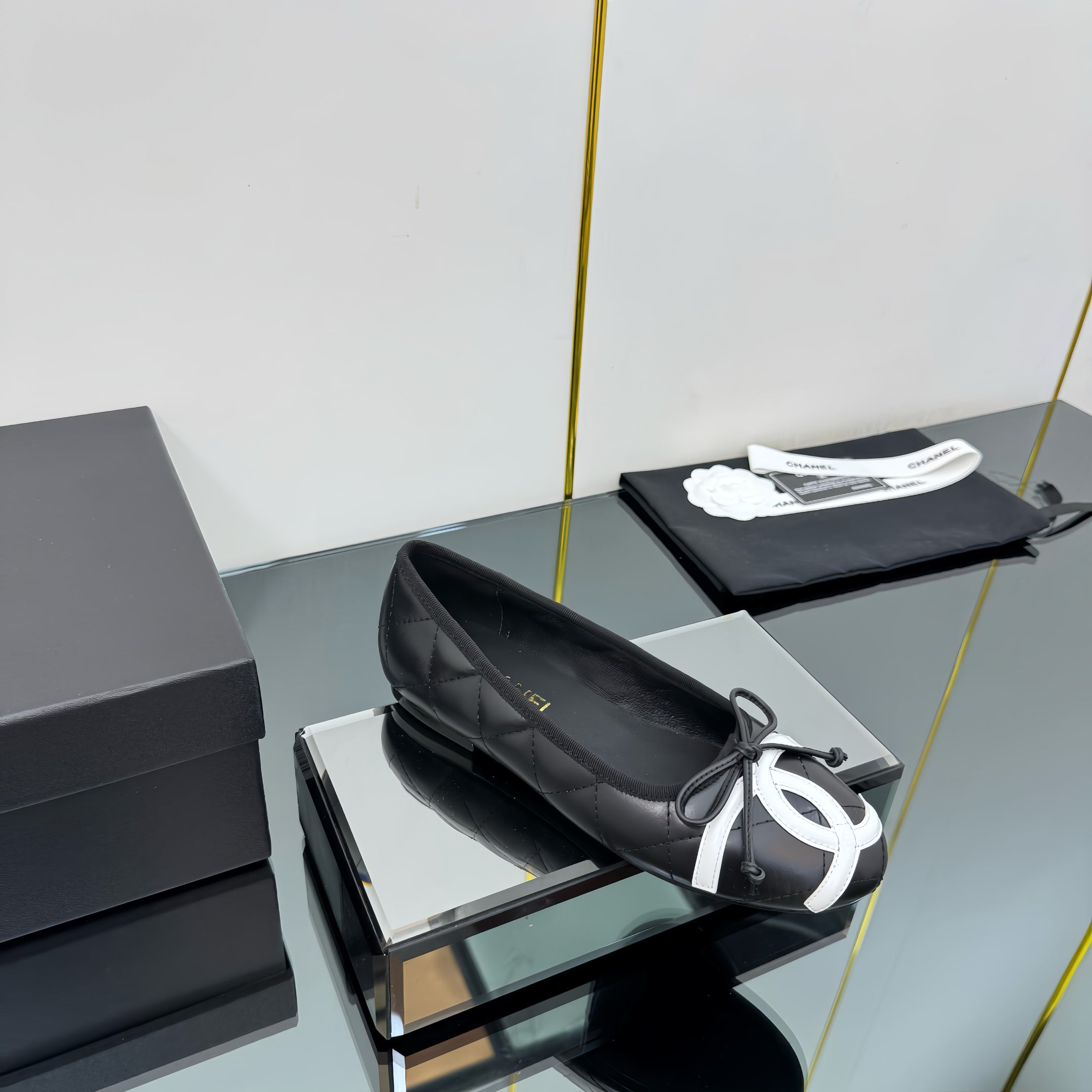 CC Loafers Black/White Sheepskin Mix Bow 297794