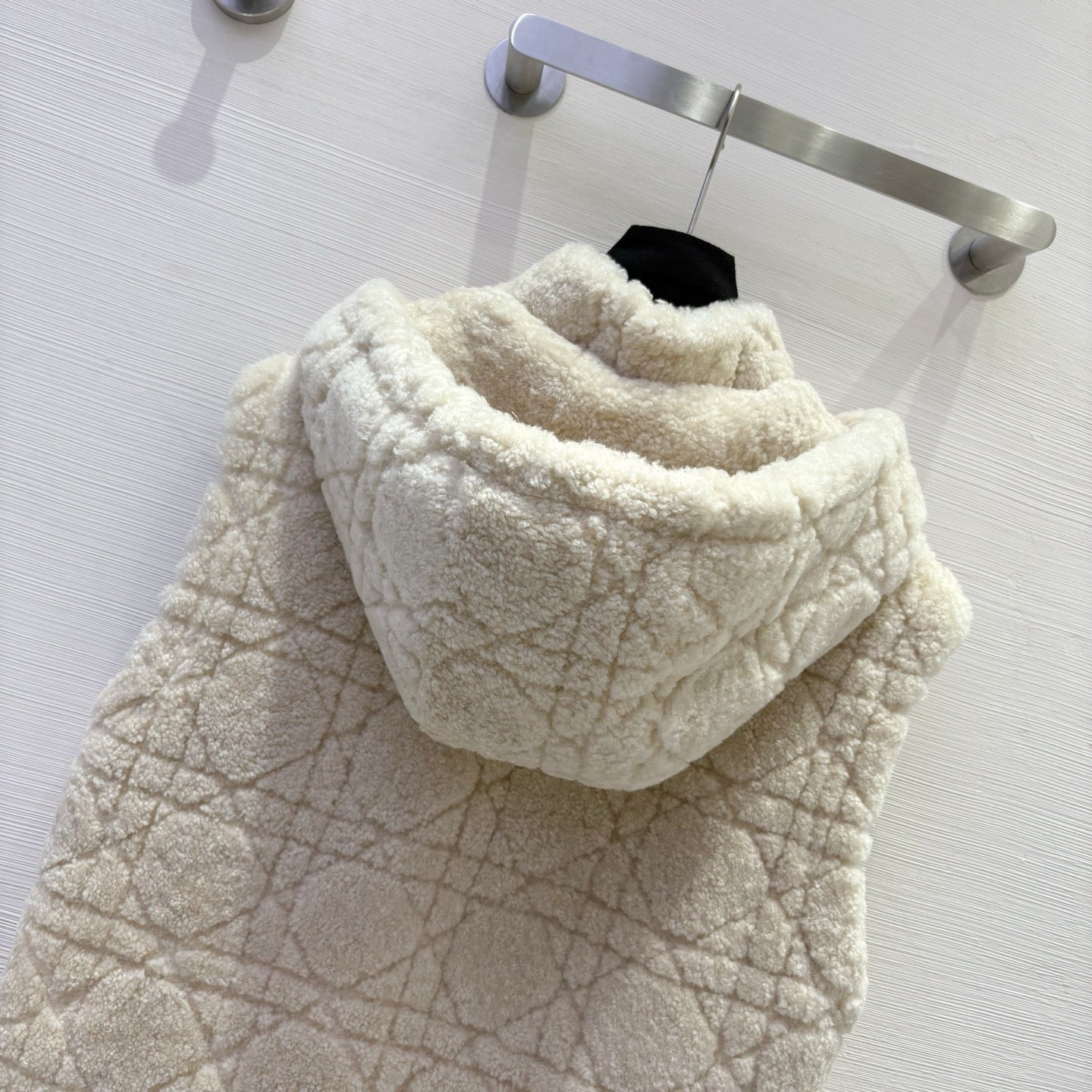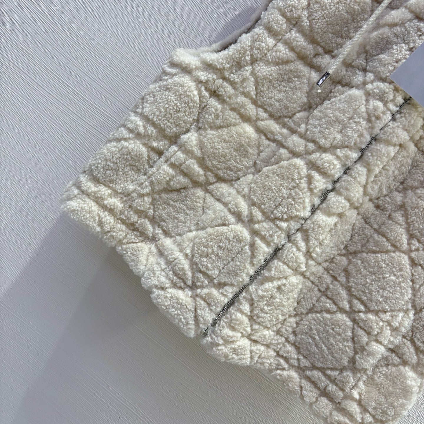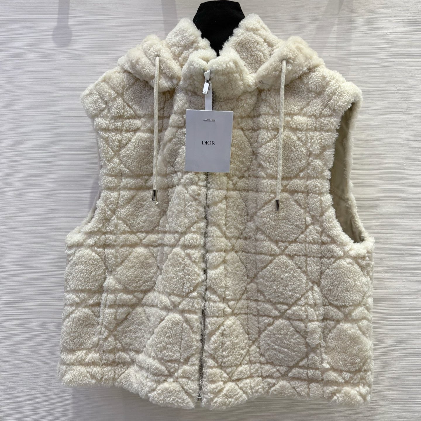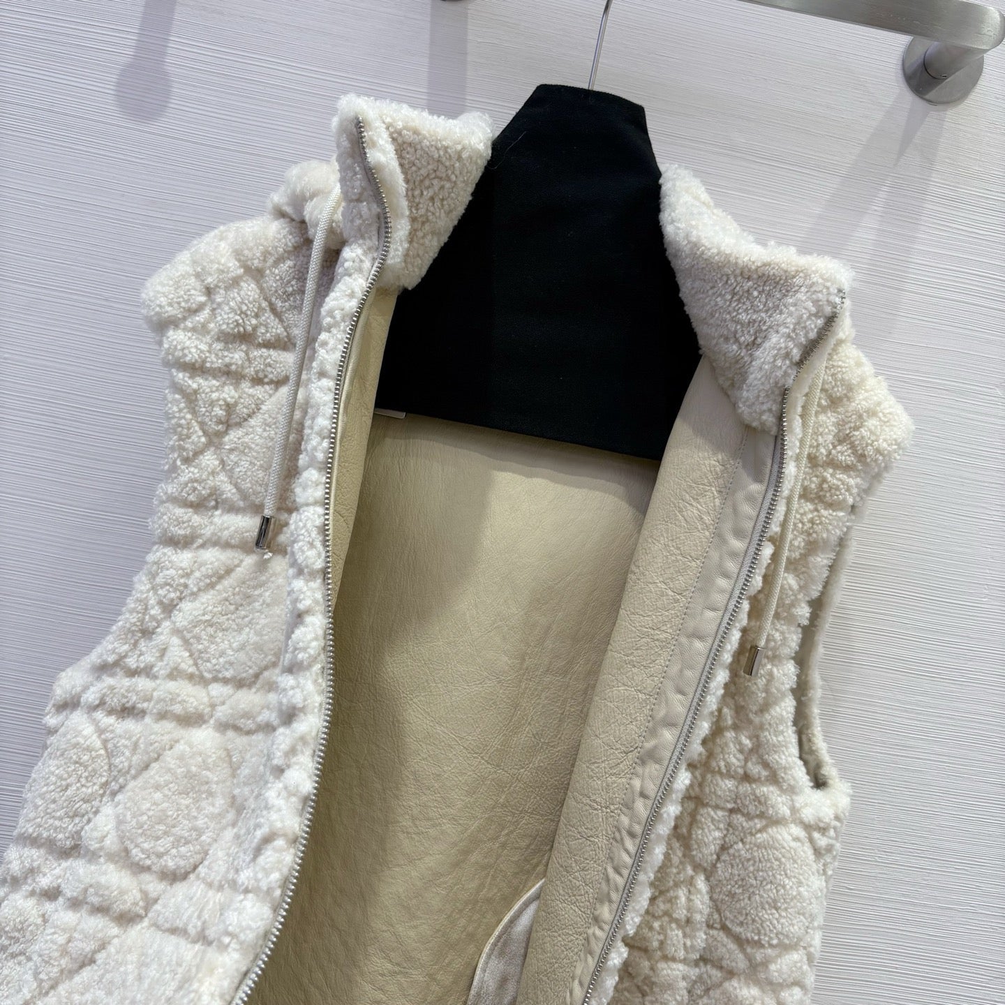CD 25 Hooded Vest Leather And Fur Ivory White