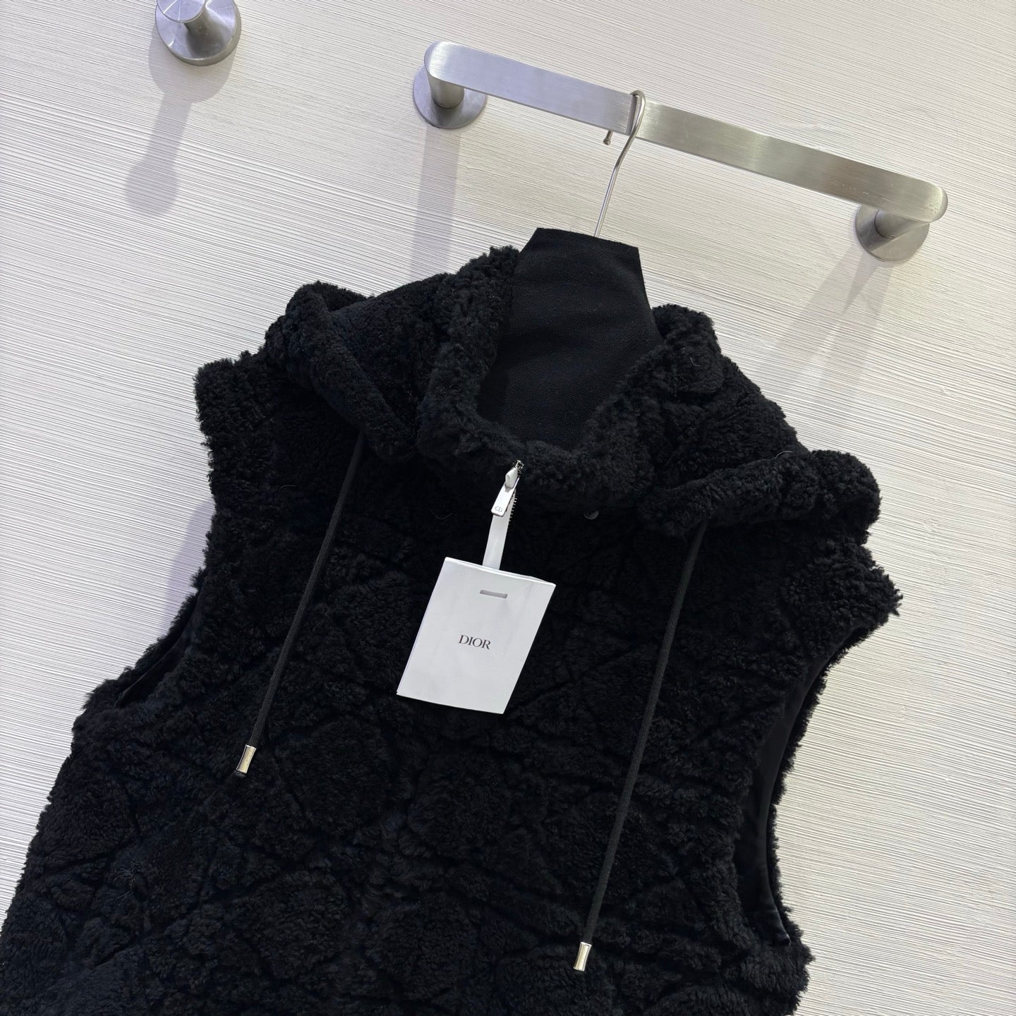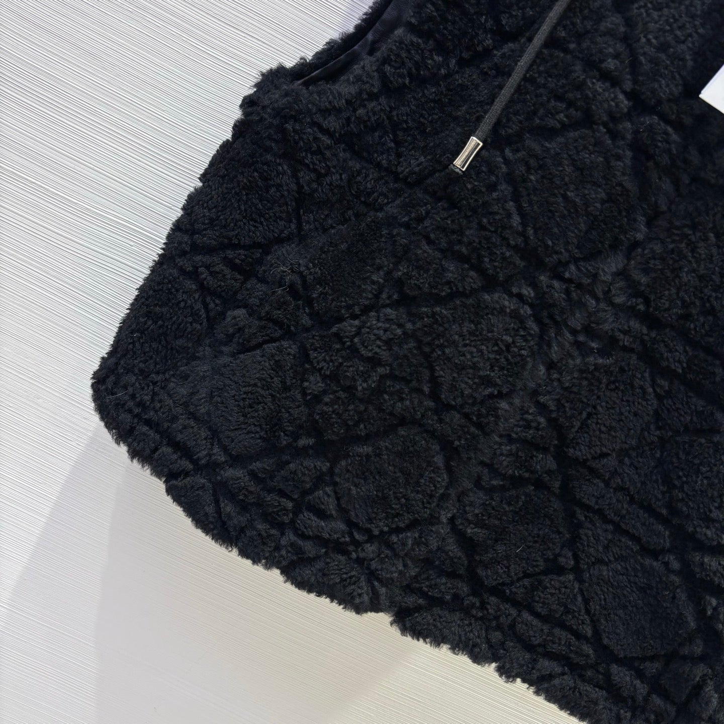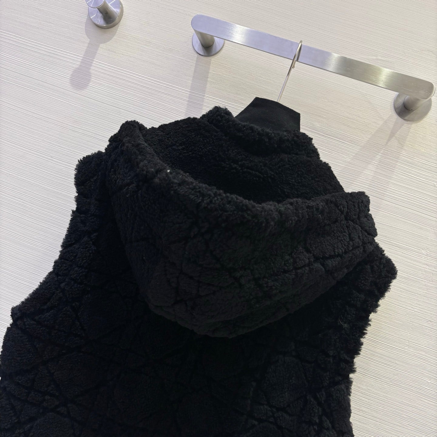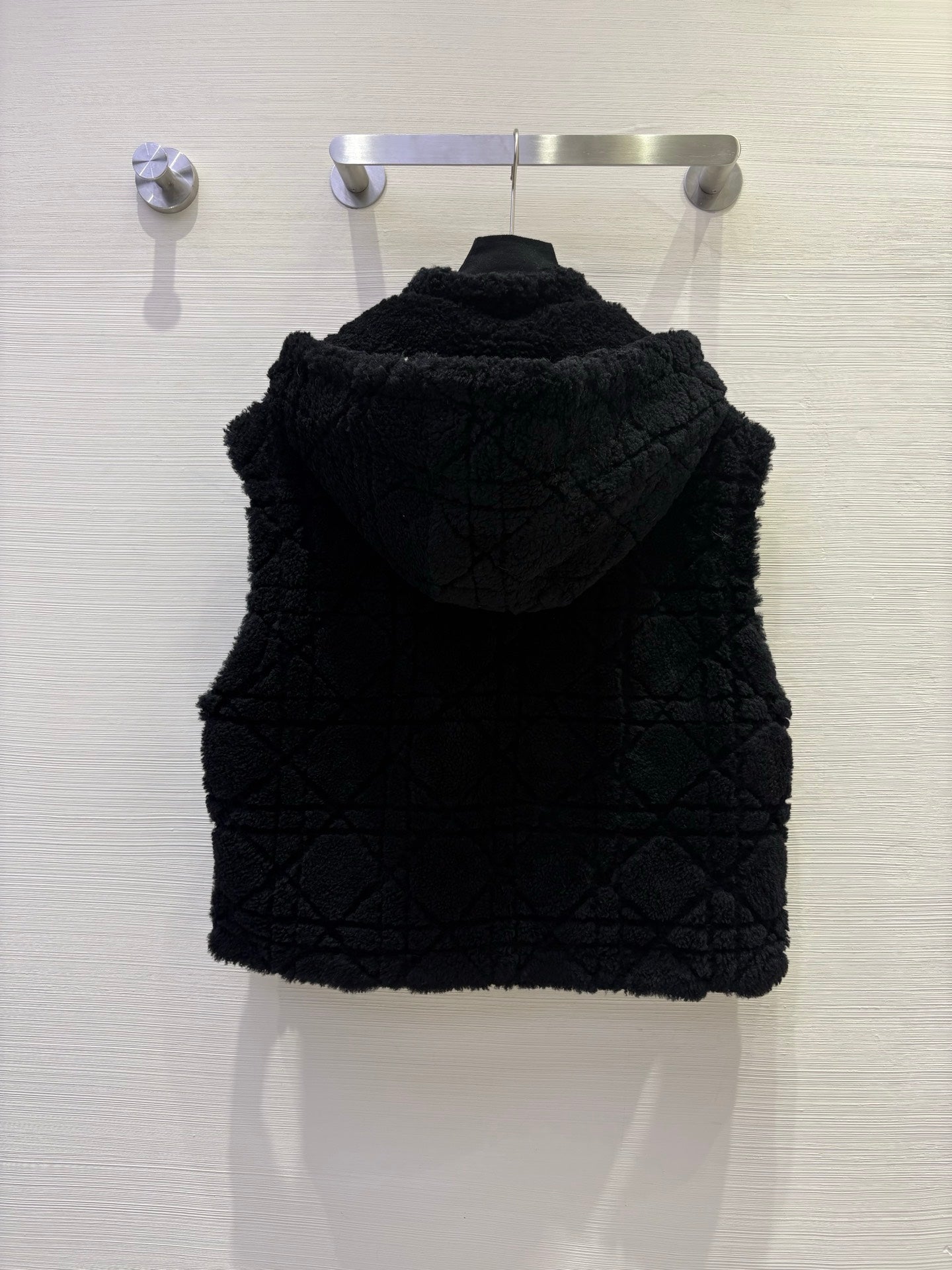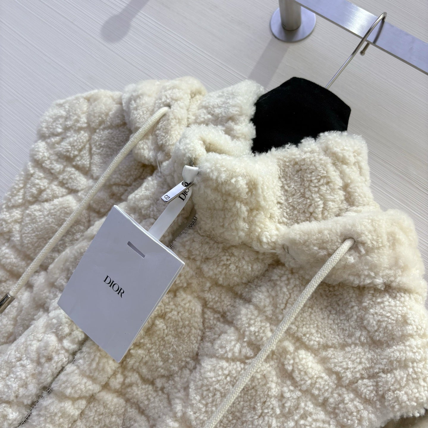 CD 25 Hooded Vest Leather And Fur Ivory White