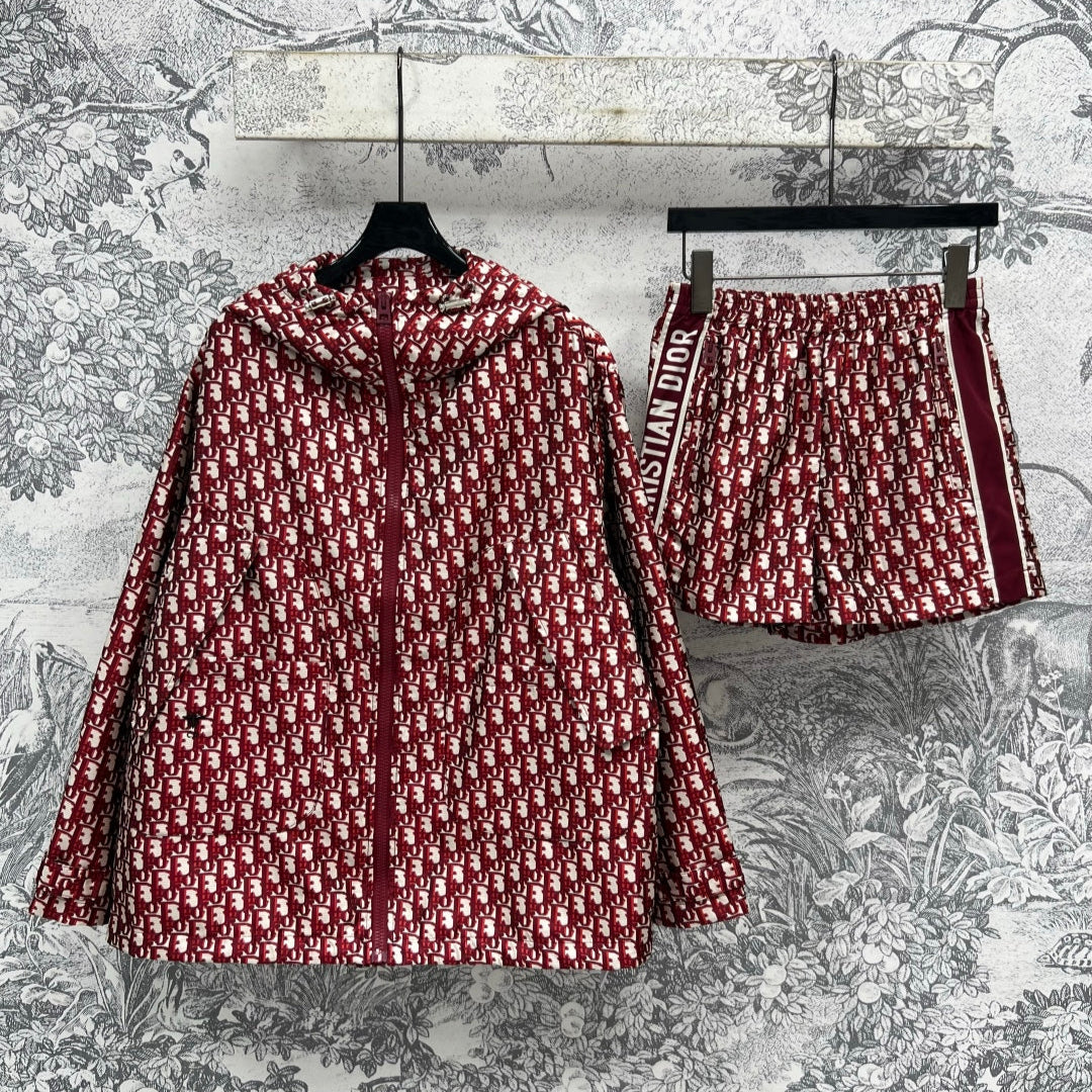 CD 25 Jacquard Patterned Jacket Set Red Polyester