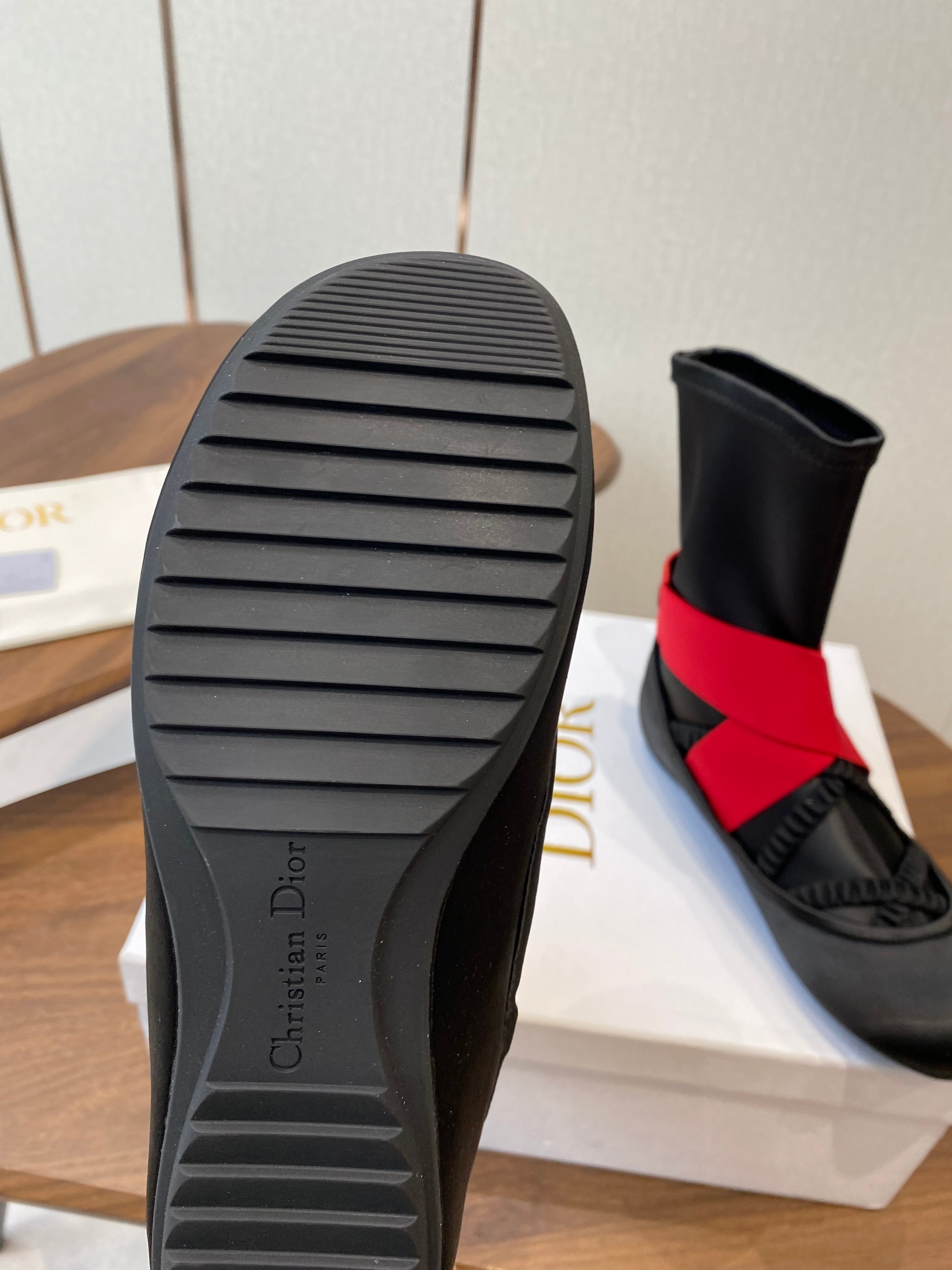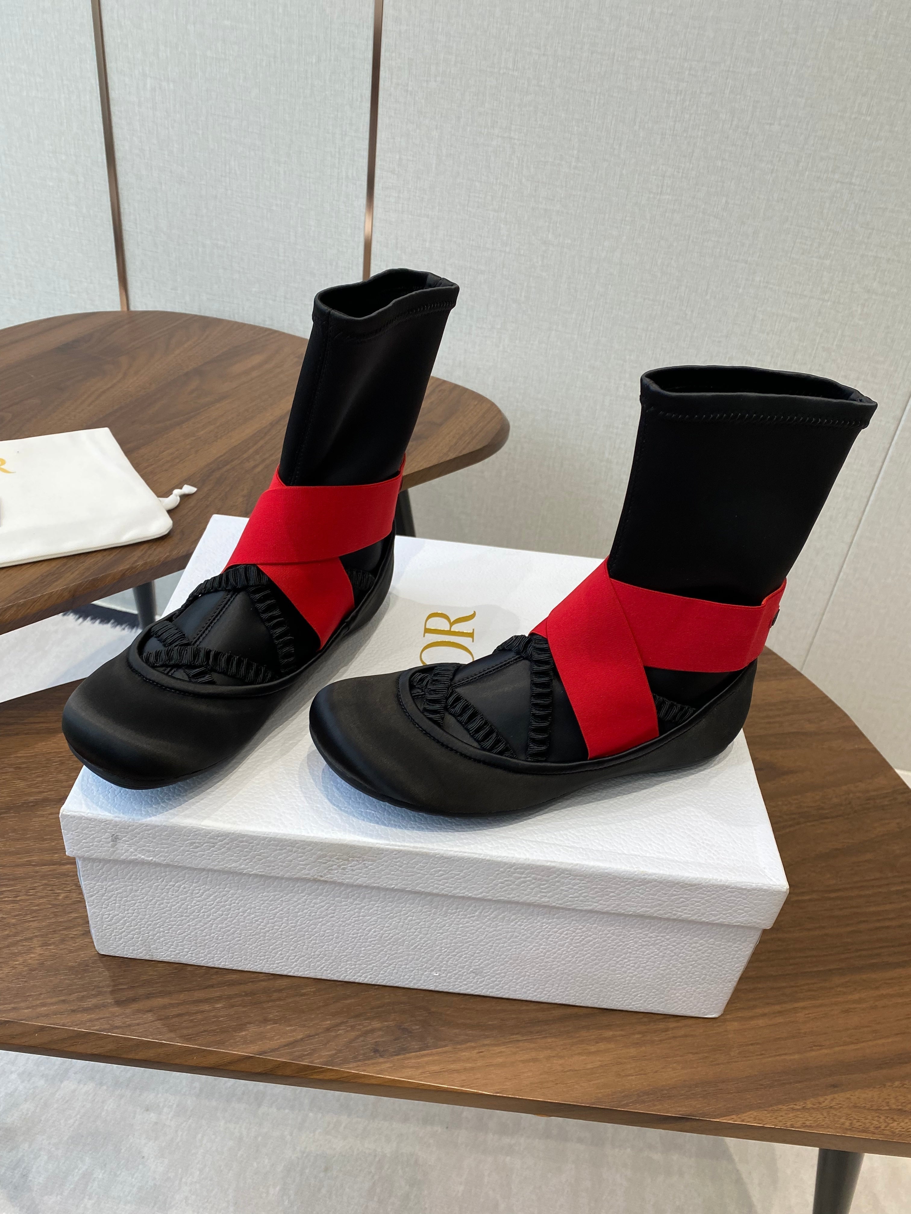 CD Ballet Stretch Boots Black Red Sheepskin Fabric 431501
