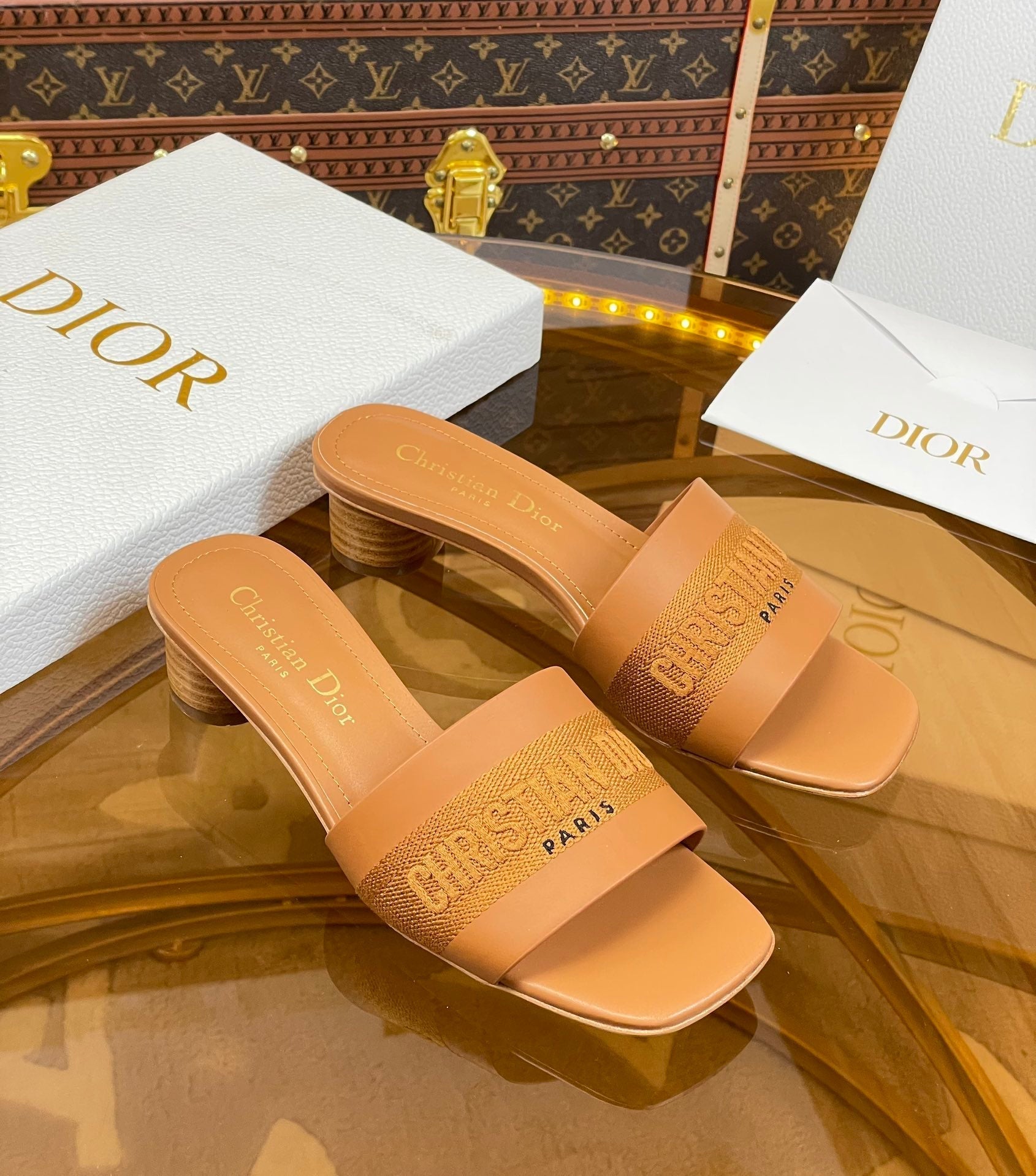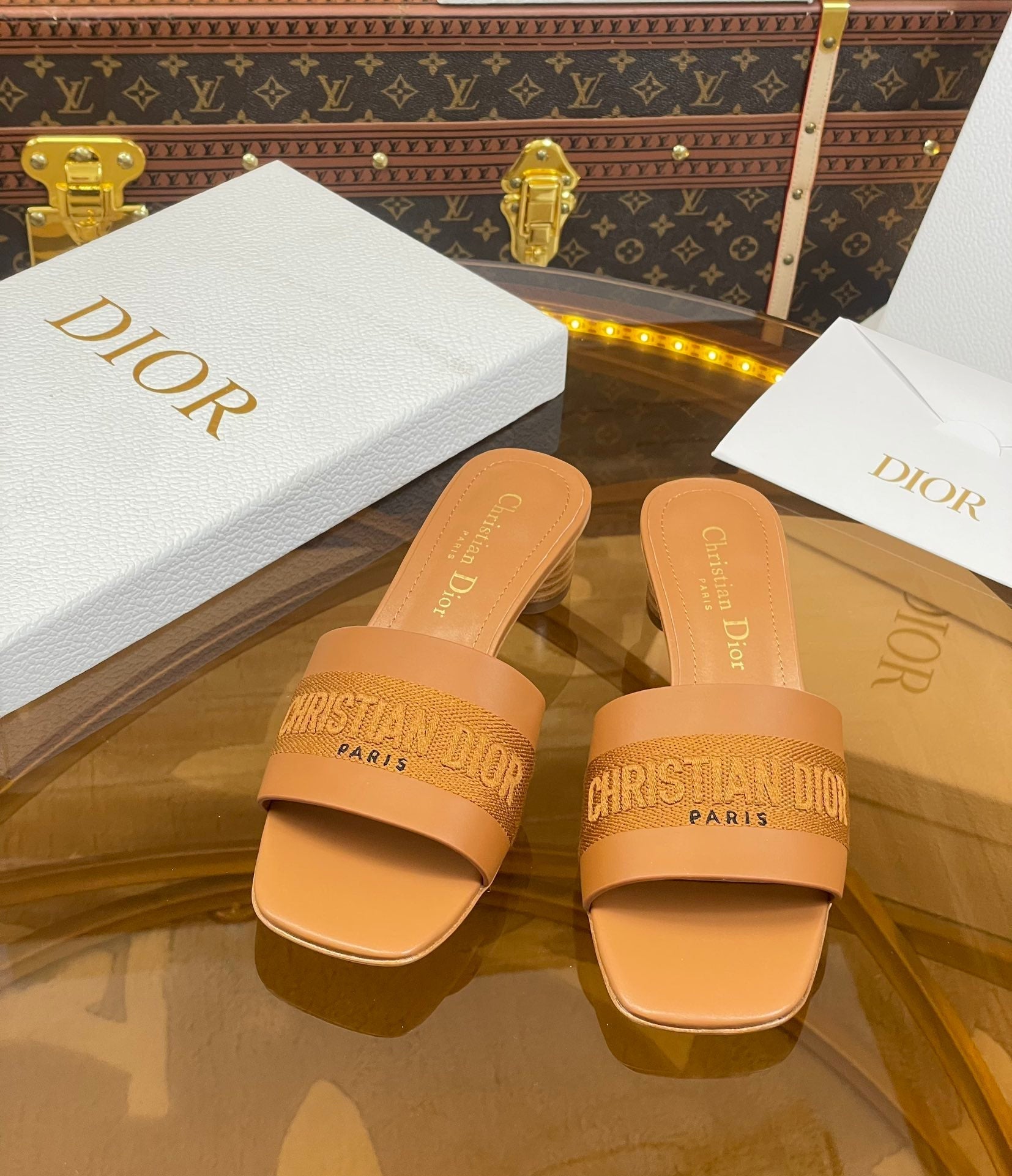 cd slide 45 camel calfskin embroidered cotton