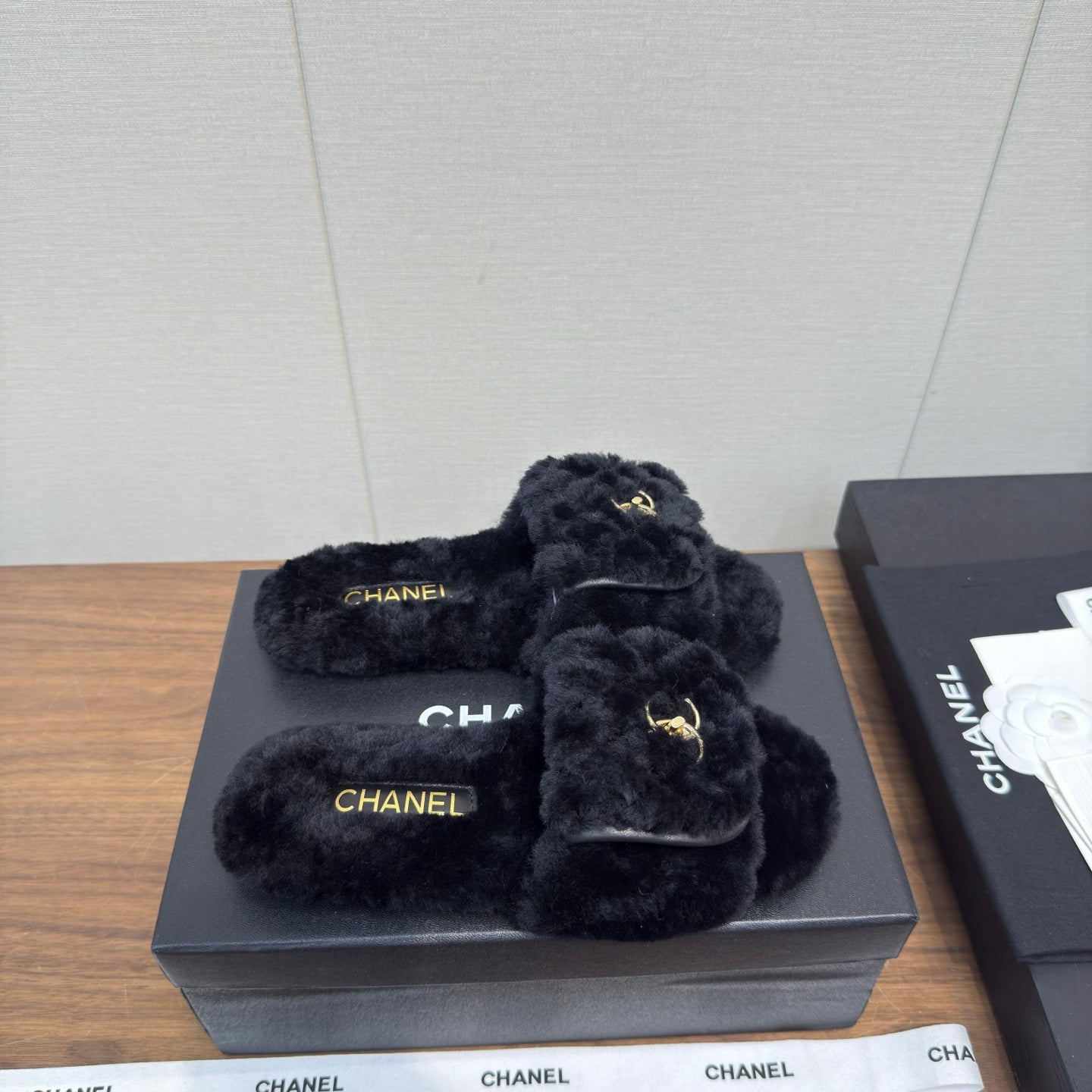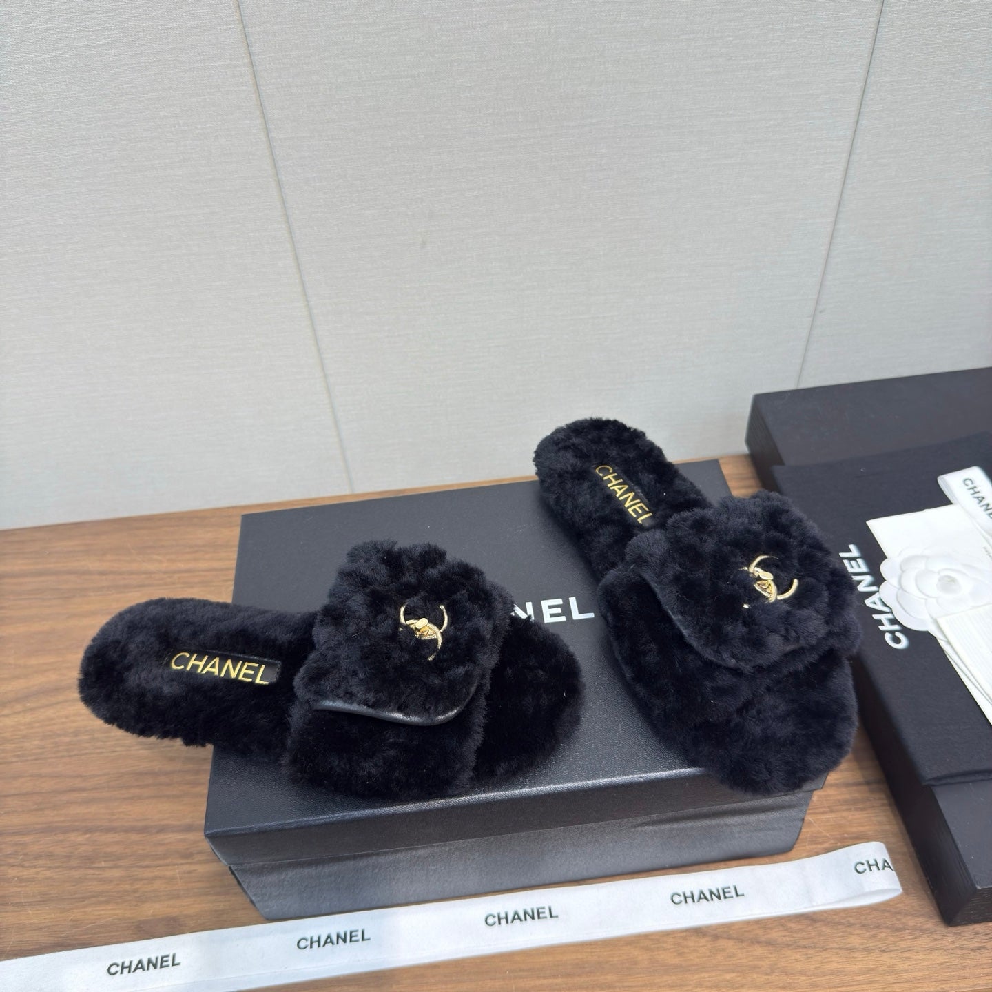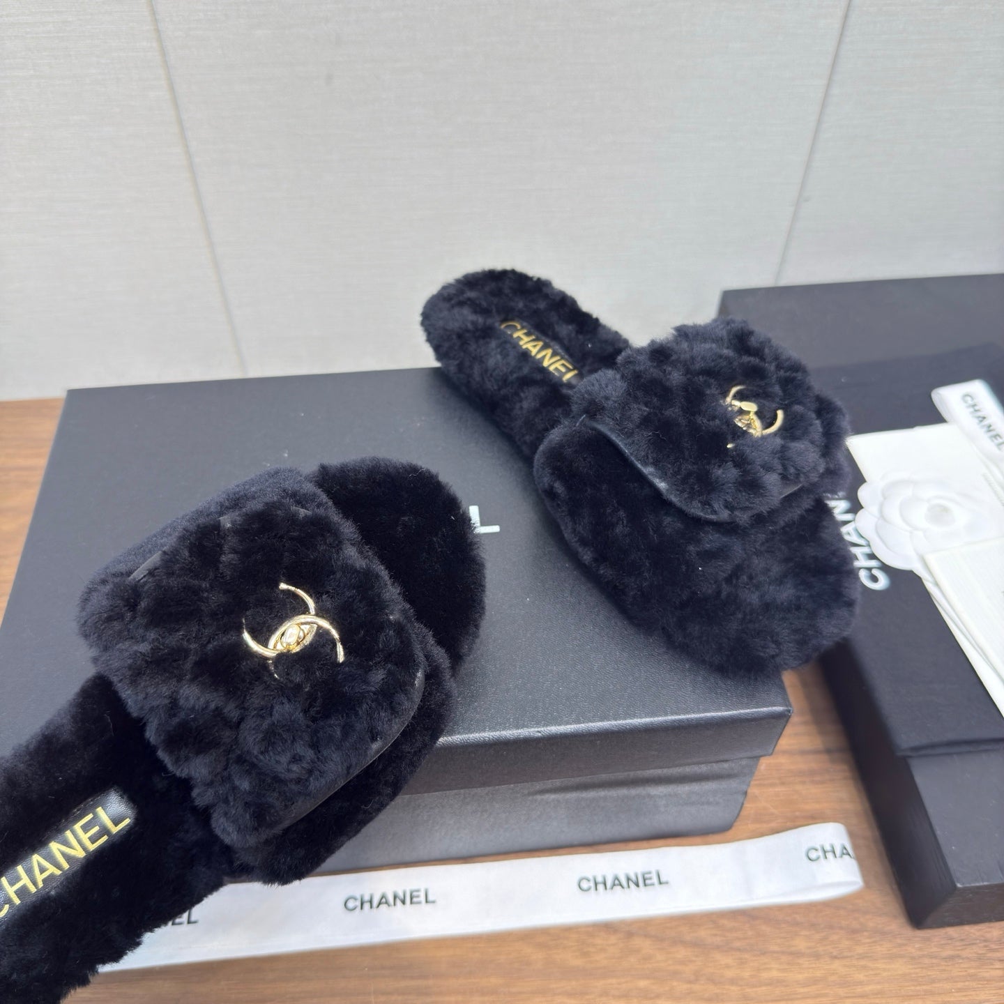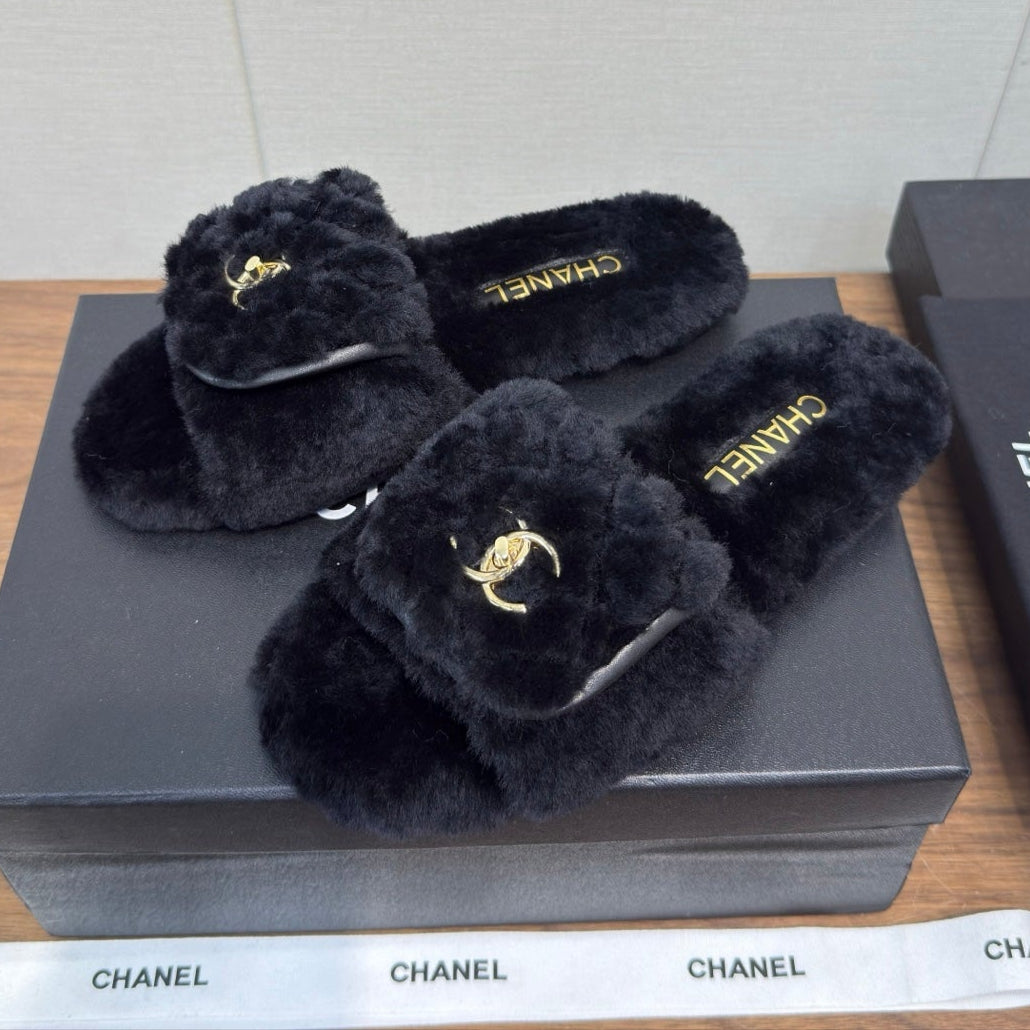 Chanel 25 Slipper black Smooth Lambwool 465602