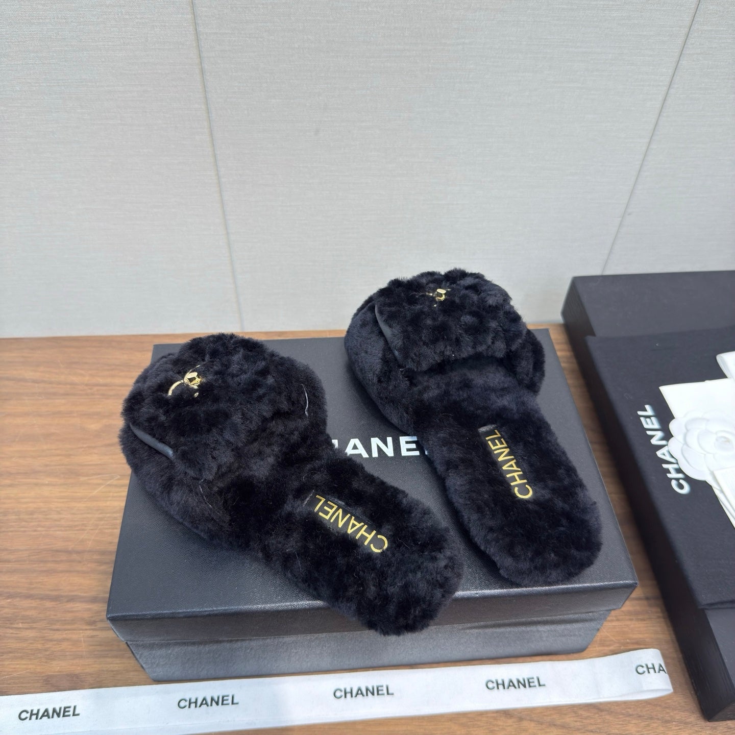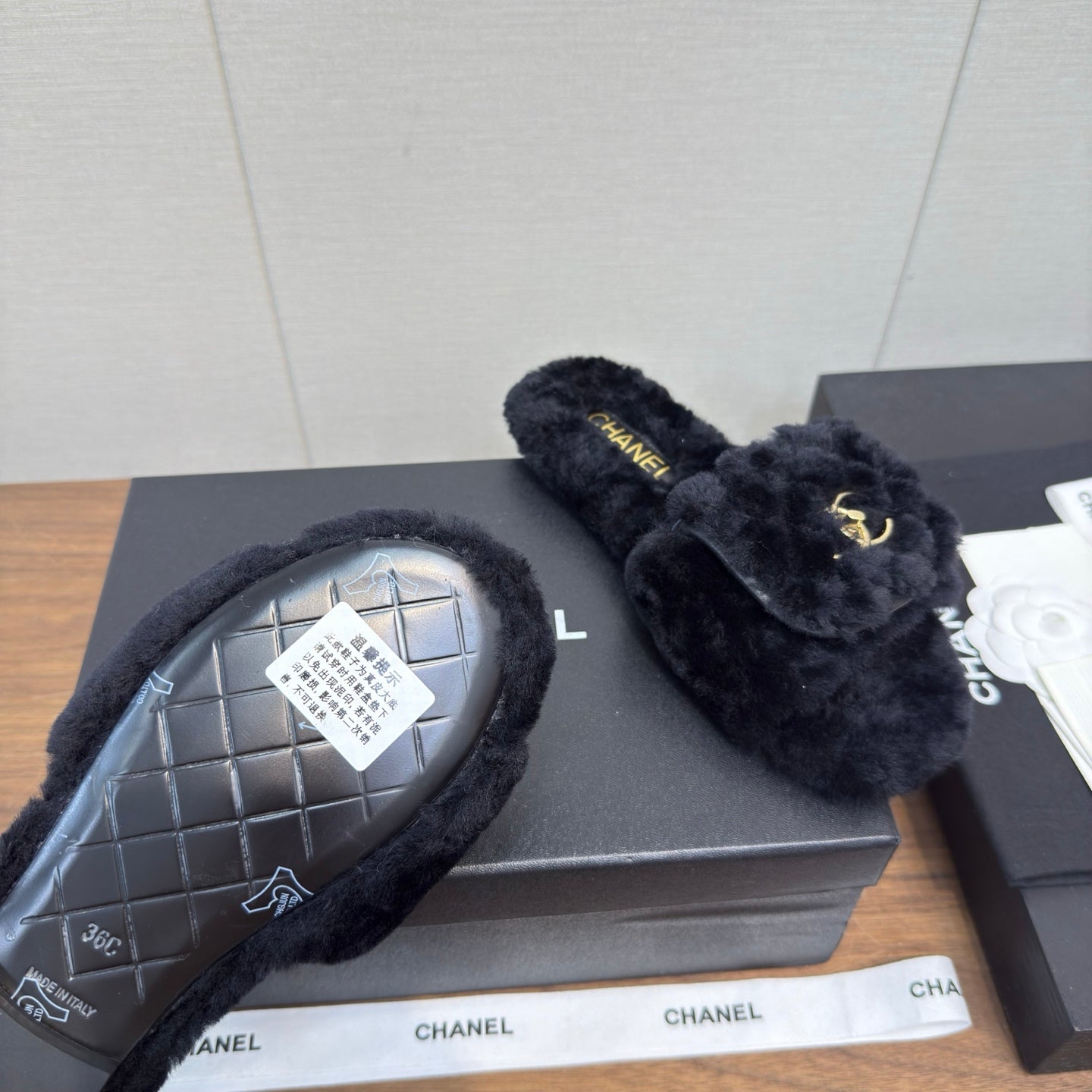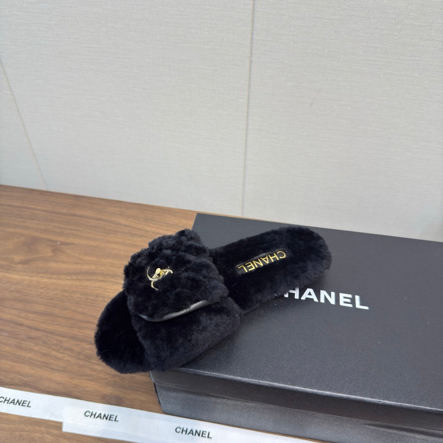 Chanel 25 Slipper black Smooth Lambwool 465602