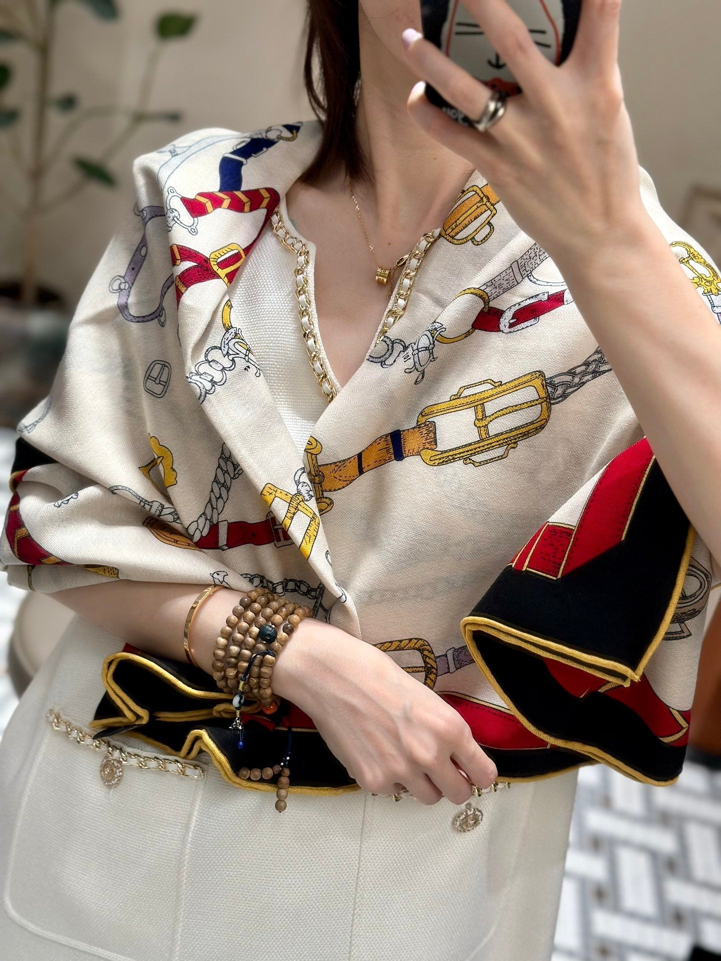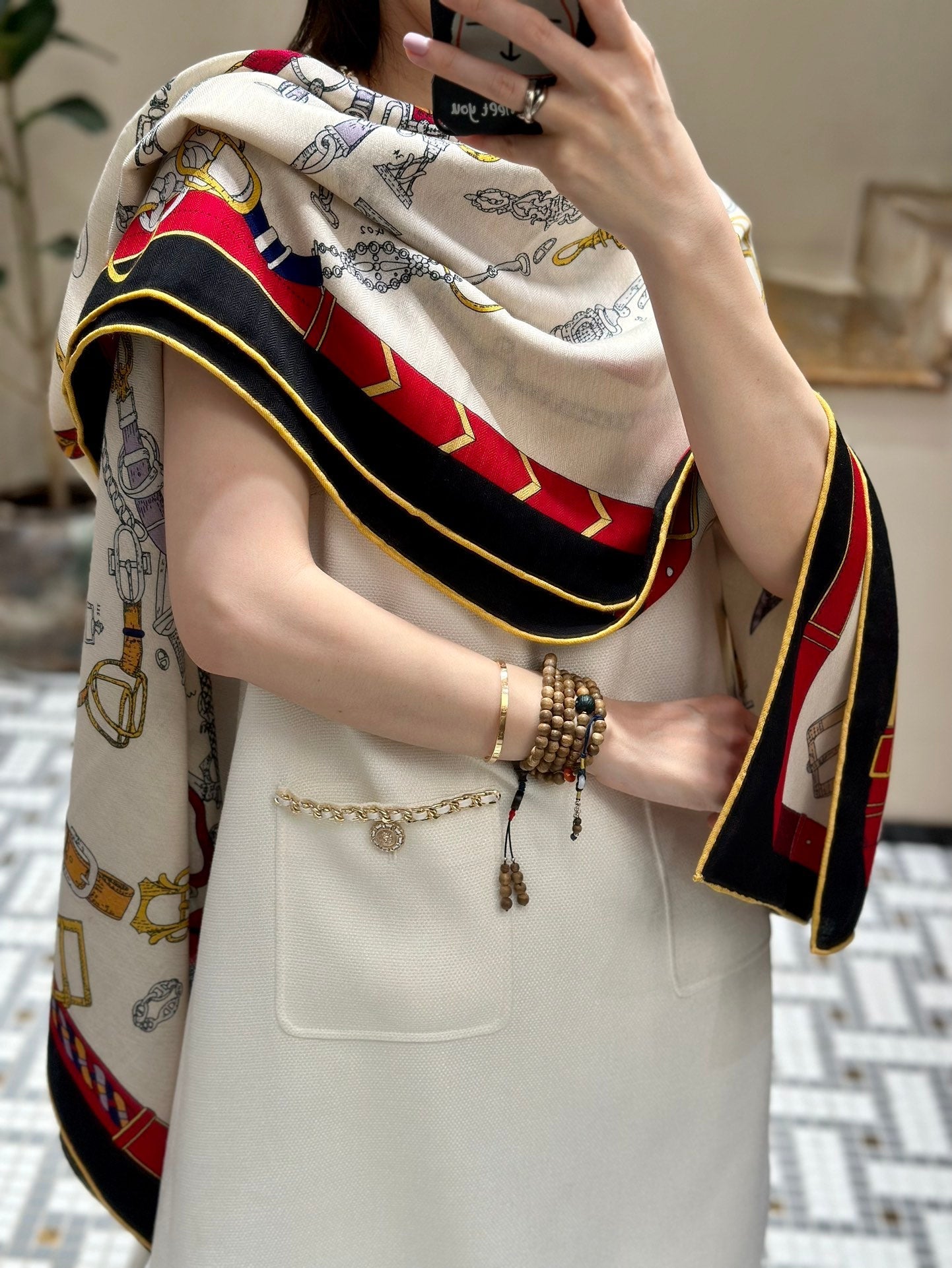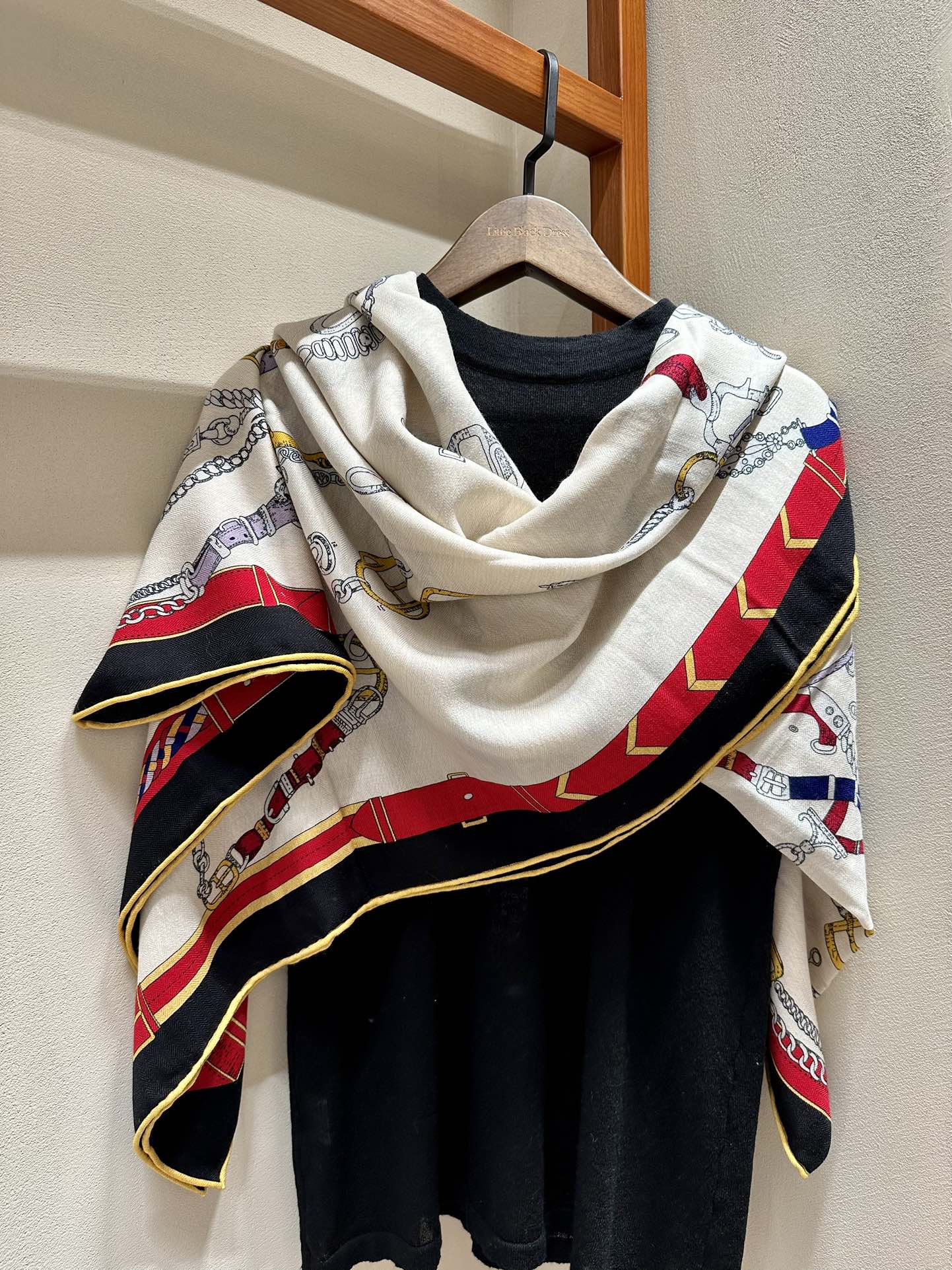 Chevaux Dechaines Shawl 135 CM IN Red Colorful Cashmere Silk 373683