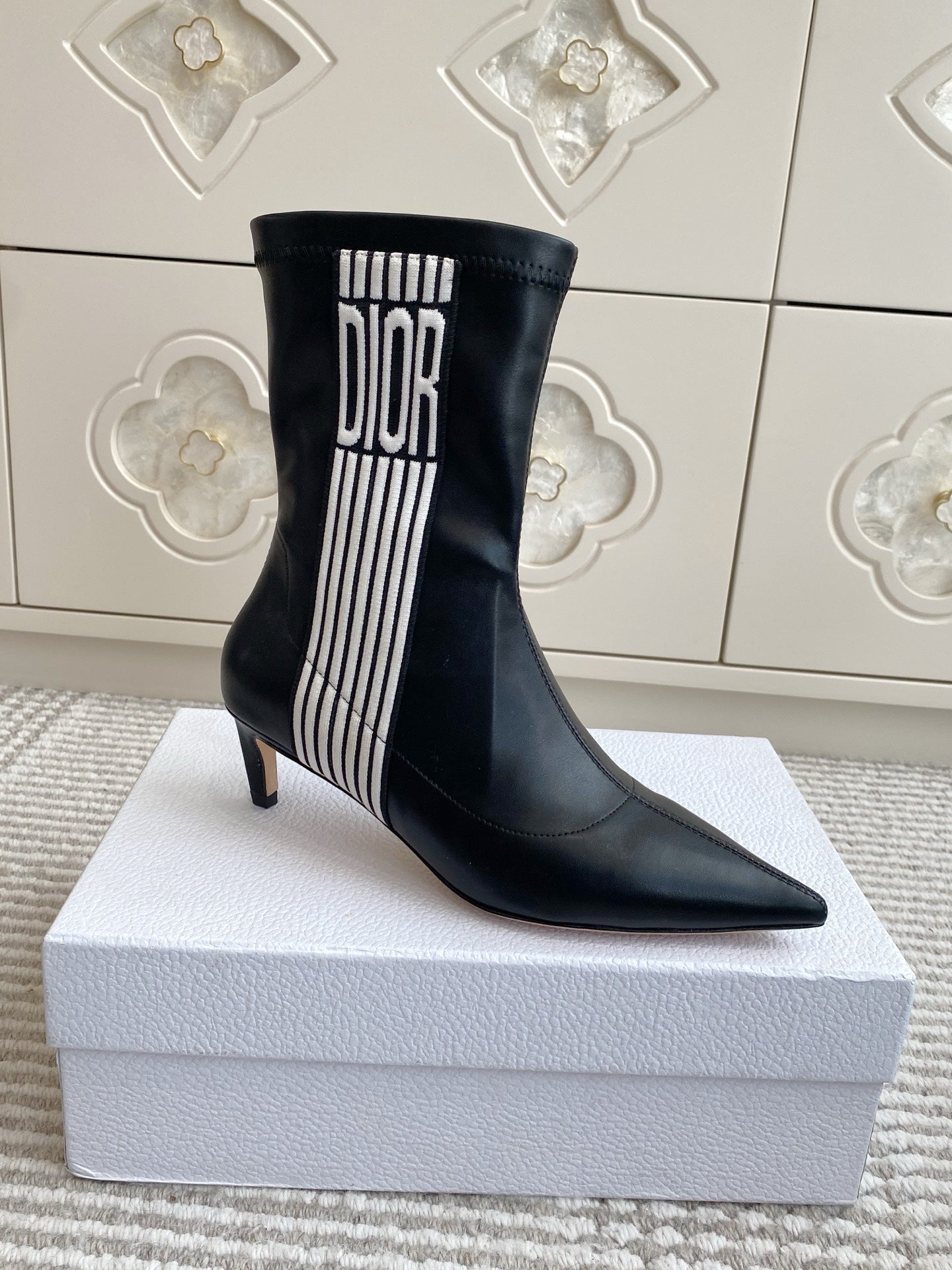 Dior 2025 Tribales Heeled Ankle Boot 50mm Black mix White Lambskin 501192