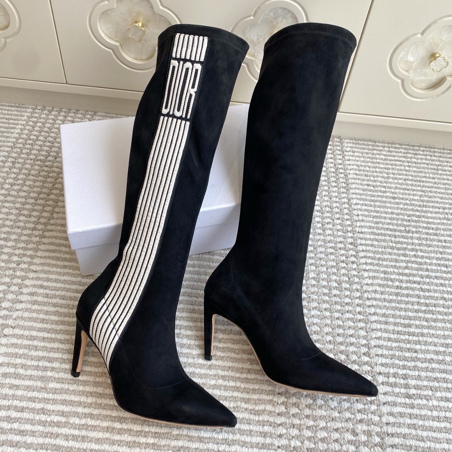 Dior 2025 Tribales Heeled Ankle High Boot 80mm Black White Suede 501198