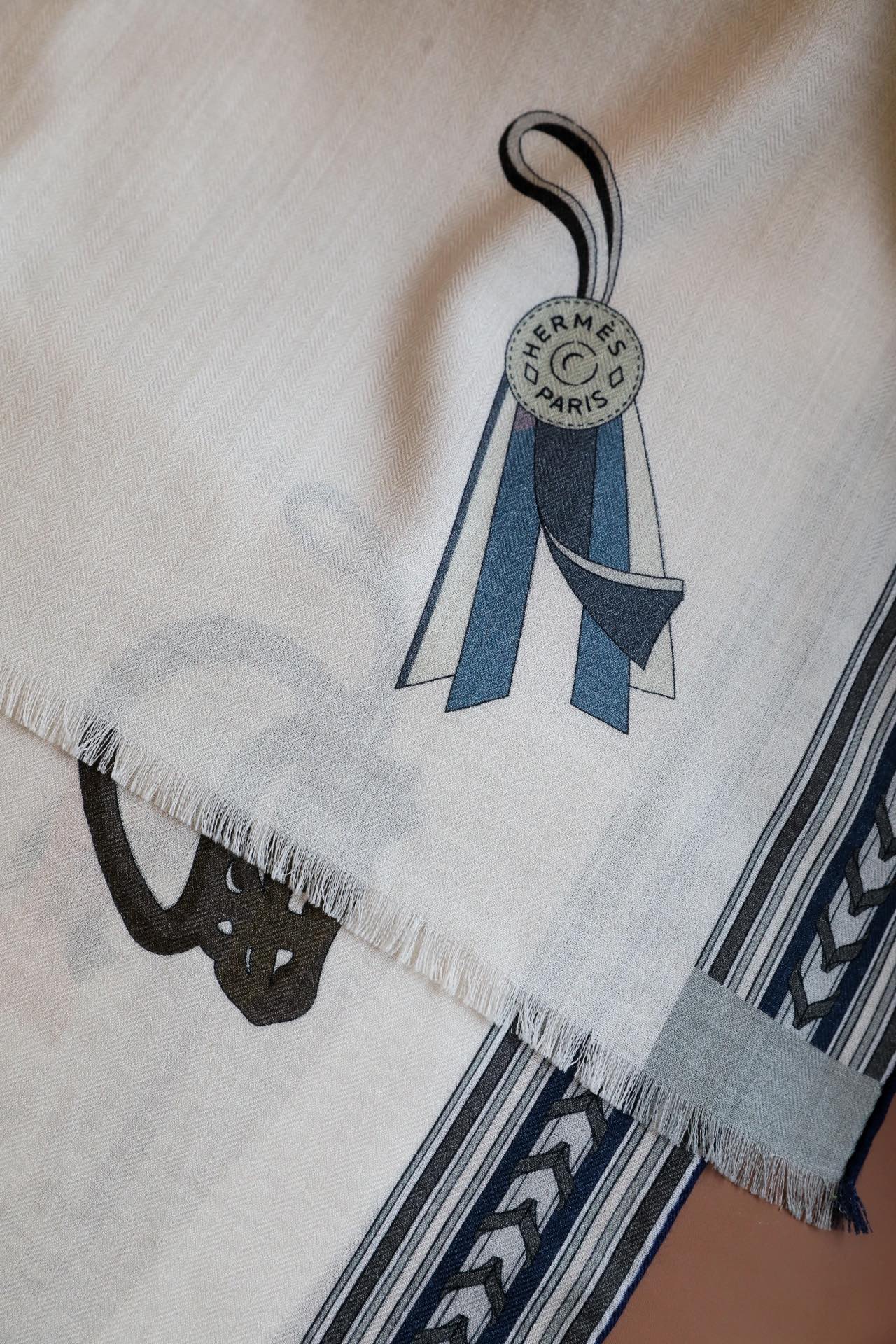 Et Gris Gris Rectangle Scarf 180 CM In White Colorful Cashmere and Mulberry Silk 401142