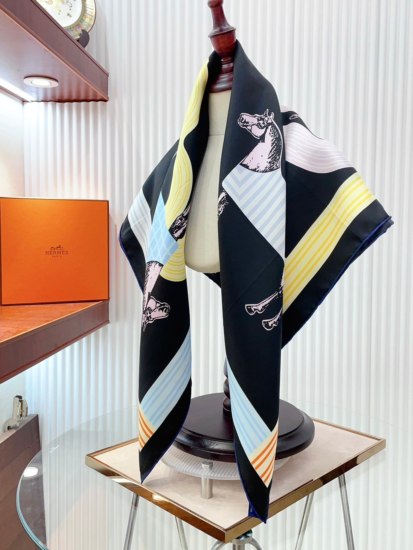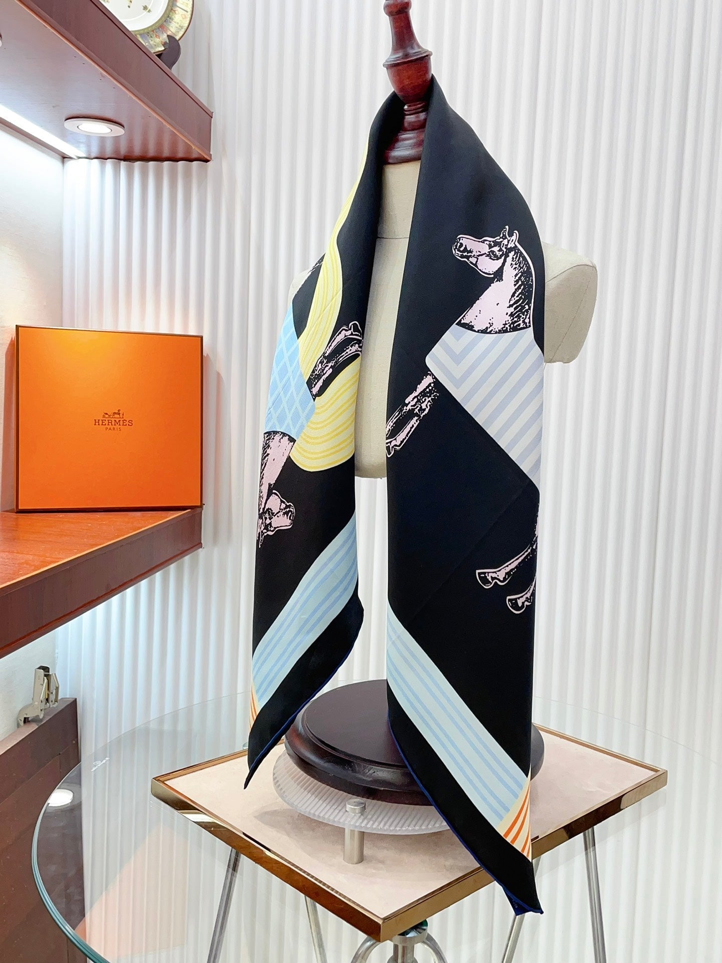Garde-Robe Pop Detail Scarf 90 CM In Black Colorful Silk Twill 337136