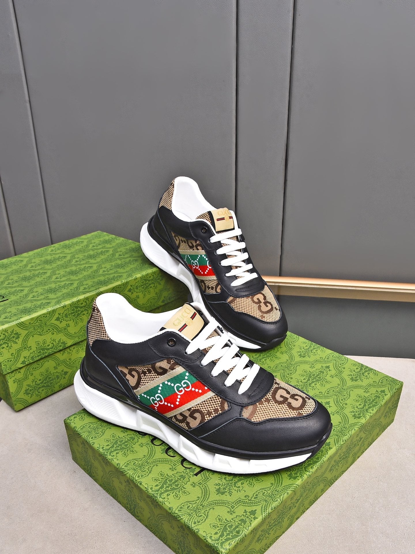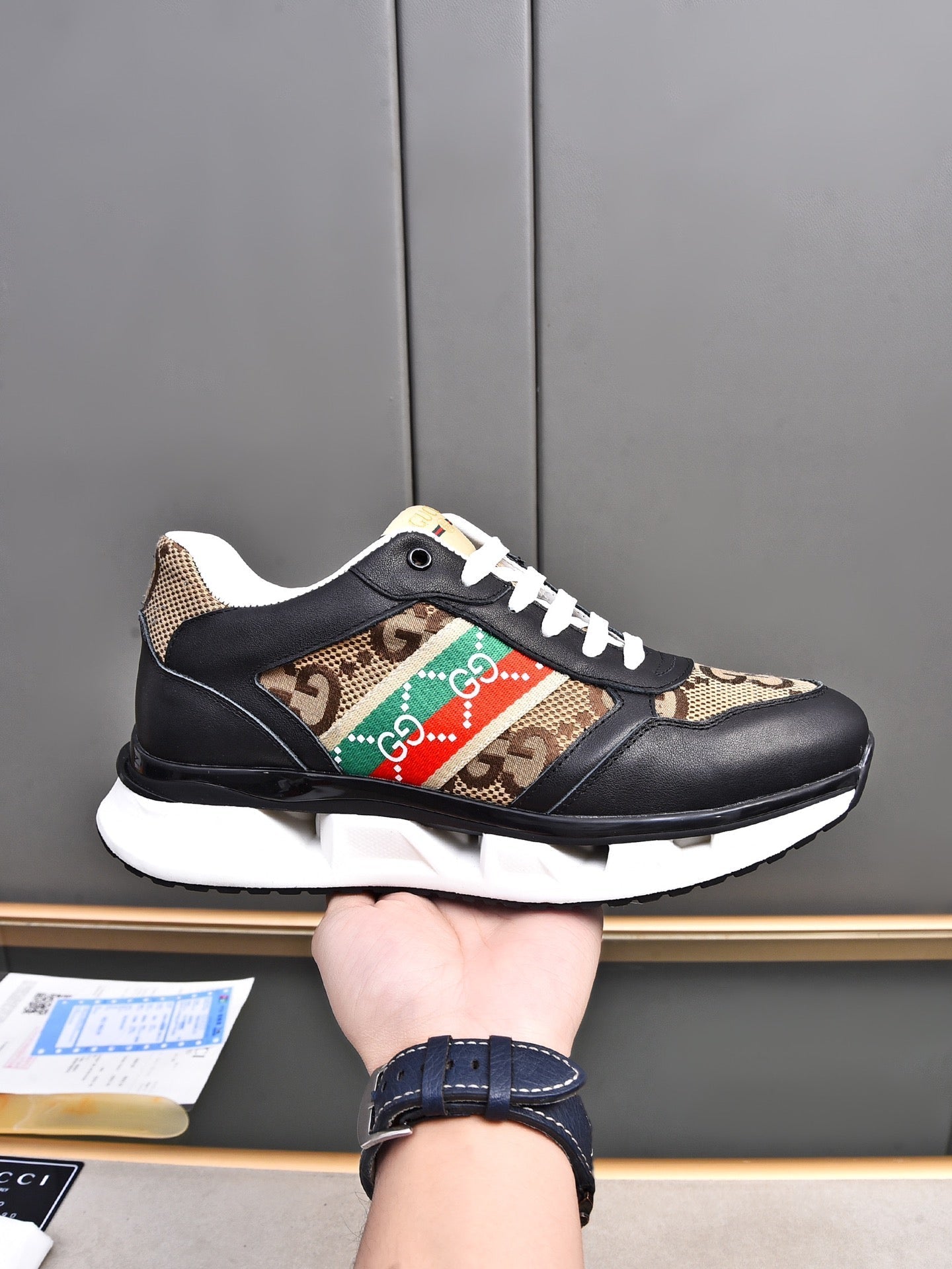 GG Men's Sneaker Black Brown Calfskin 522004